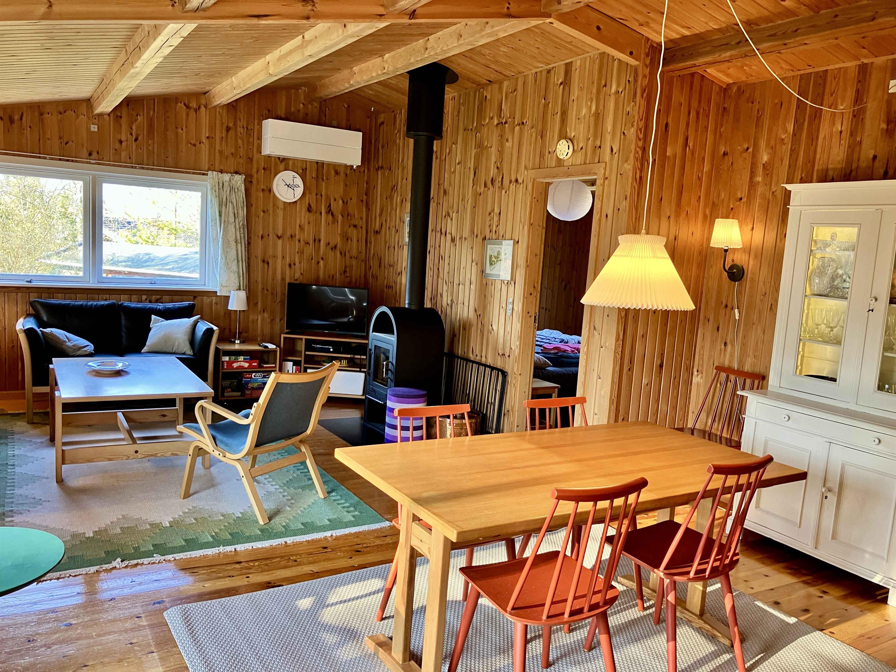 Das Ferienhaus „Solhi“, was „wo die Sonne sich (immer) versteckt“ bedeutet, ist ein charmantes, persönlich eingerichtetes Holz-Sommerhaus mit WiFi, einem großen Garten von ca. 1000 m² und mehreren Terrassen, wo Sonne und Schatten zur Entspannung einladen. Das Innere verbindet originale Elemente mit modernen Annehmlichkeiten. Das Haus verfügt über einen geräumigen Wohnraum mit sichbaren Holzbalken, Kaminofen und Essbereich. Drei Zimmer bieten flexible Schlafplätze für max. 4 Erwachsene und 2 Kinder unter 150 cm: ein Kinderzimmer mit Etagenbett, ein Schlafzimmer mit Doppelbett 180x200 cm und ein weiteres Schlafzimmer mit zwei Einzelbetten 80x200 cm, von denen eines ins Kinderzimmer statt des Schreibtischs gestellt werden kann. Küche und Bad werden im Januar 2026 renoviert; Fotos folgen. Die Besitzer wohnen in der Nähe sprechen Deutsch und die Kinder (geb. 2014 und 2018) spielen gerne mit den Gastkindern. Der große Garten und das kleine Kinderannex bieten Platz zum Spielen und Entspannen. Kinder können mit Spielzeug, Brettspielen und Büchern auf Dänisch und Deutsch Spaß haben. Der Fernseher hat Streaming-Apps, für die Sie Ihre eigenen Logins benötigen. Solhi ist ein komplett rauchfreies Haus und bietet kostenloses Parken, Feuerstelle, Grill, Hochstuhl und Reisebettchen (nach Vereinbarung) das ins Elternzimmer passt, und Radio mit Bluetooth. Die Wärmepumpe aus 2025 sorgt für ein gutes Raumklima und niedrige Stromkosten. Mit seiner Mischung aus Ruhe, Naturerlebnissen, Kultur und Nähe zur Stadt ist Solhi die perfekte Basis für unvergessliche Ferien nicht weit von der Ostsee und dem Strand in Odsherred entfernt. Das Gebiet Entdecken Sie Odsherred und Høve Strand – ein einzigartiges, landschaftlich reizvolles Gebiet entlang der Sejerø-Bucht mit breiten, kinderfreundlichen Sandstränden, friedlichen Wäldern und eiszeitlich geformten Hügeln. An der Ostsee, die ihr in 5 Minuten mit dem Auto erreicht (mit kostenlosem Parkplatz!) gibt es flache Dünen, gute Bademöglichkeiten und schöne Wander- und Radwege, perfekt für entspannte Erholung und aktive Outdoor-Erlebnisse. Die Region ist bekannt für ihre wunderschöne Natur und reiche Tierwelt, einschließlich häufiger Besuche neugieriger Rehe im großen Garten des Ferienhauses. Die ruhigen Gewässer der Sejerø-Bucht laden zum Kajakfahren, Windsurfen und Angeln ein, und Sie können ein kaltes Bier und einen Burger imIn der Lillero Strandbar genießen, nach einem Tag am Strand. Sehenswürdigkeiten in der Nähe Die Lage ist ideal mit nur ca. 1 Stunde Fahrt nach Kopenhagen, ca. 40 Minuten nach Roskilde und ca. 2,5 Stunden nach Aarhus (mit Fähre), sodass Ferien in friedlicher Naturumgebung leicht mit Tagesausflügen zu Attraktionen wie Sommerland Sjælland, Sagnlandet Lejre, Andelslandsbyen Nyvang, Wikingerschiffmuseum und allen städtischen Highlights kombiniert werden können. In den Sommermonaten gibt es auch den Vig Flohmarkt jeden Mittwoch und Samstag für gute Schnäppchen. Sie können Fleisch und Eier in einem nahegelegenen Bauernladen kaufen, wo Kinder Hühner beobachten und Kaninchen streicheln können, und auf einem Streichelhof in Høve kan man gelegentlich Ponys reiten und Ziegen streicheln. Genießen Sie ein Abendessen im Gourmetrestaurant Formel B’s Sommer-Pop-up Lille B in Spazierweite (25 Minuten). Weitere Gourmet-Erfahrungen: Dragsholm Slot und Restaurant MOTA im Anneberg Kulturpark sind ca. 20 Minuten mit dem Auto entfernt. Achtung: Wird nicht für gewerbliche Nutzung vermietet.