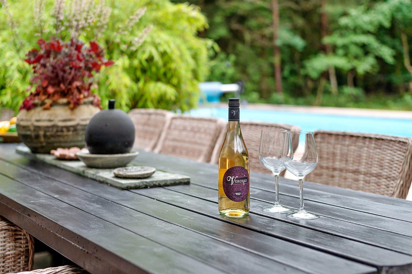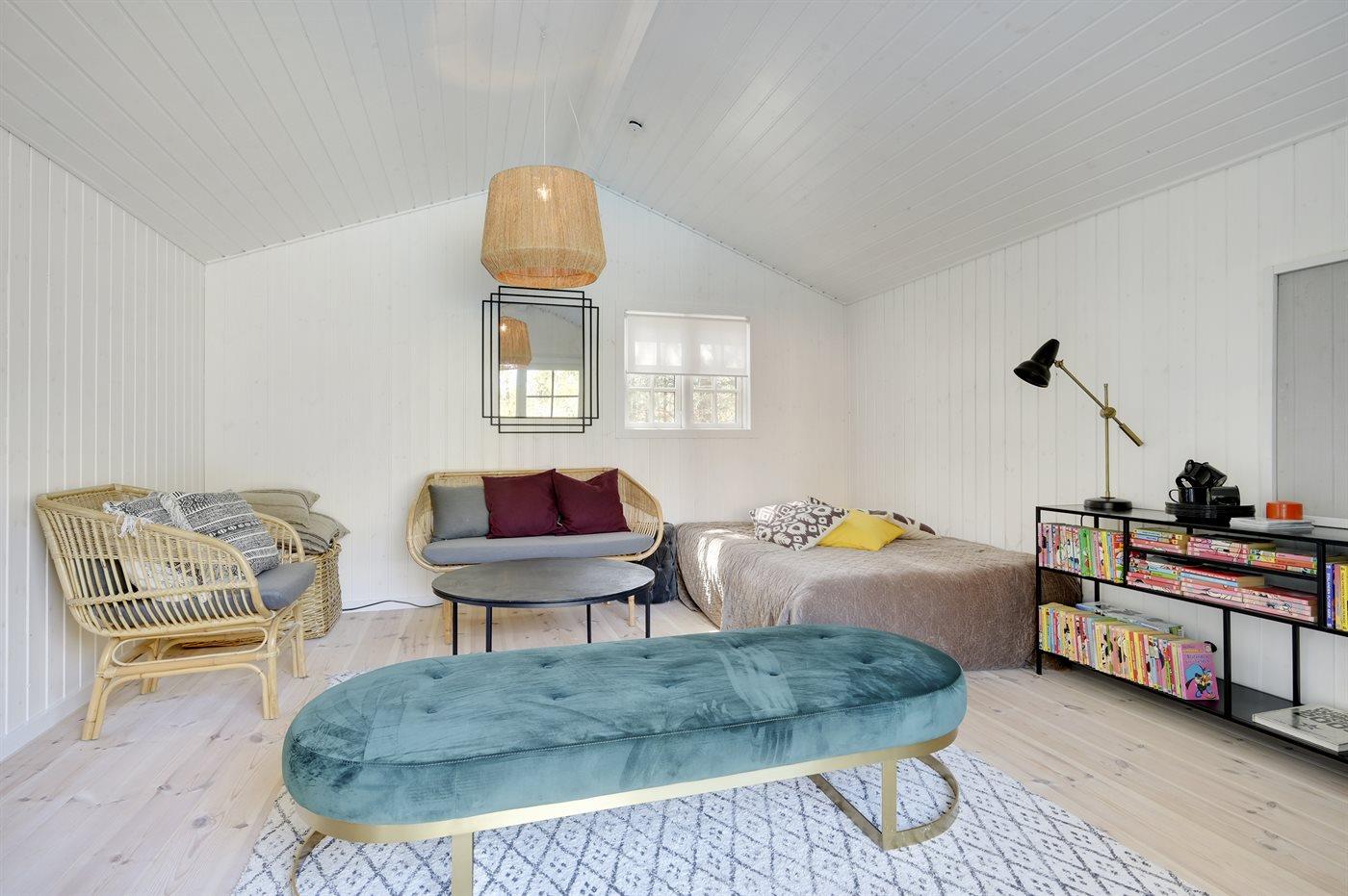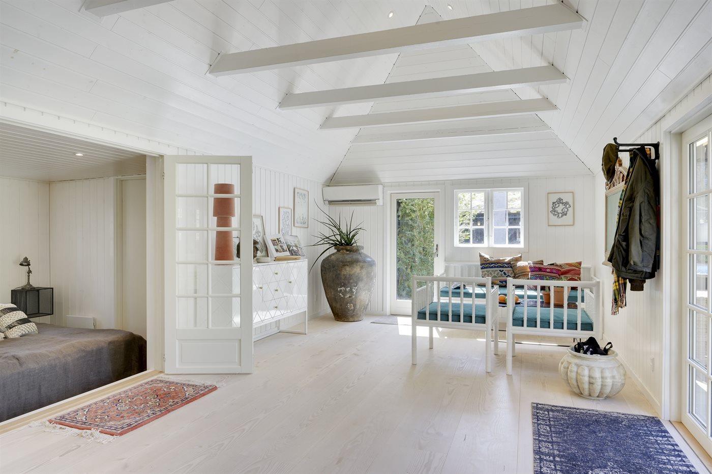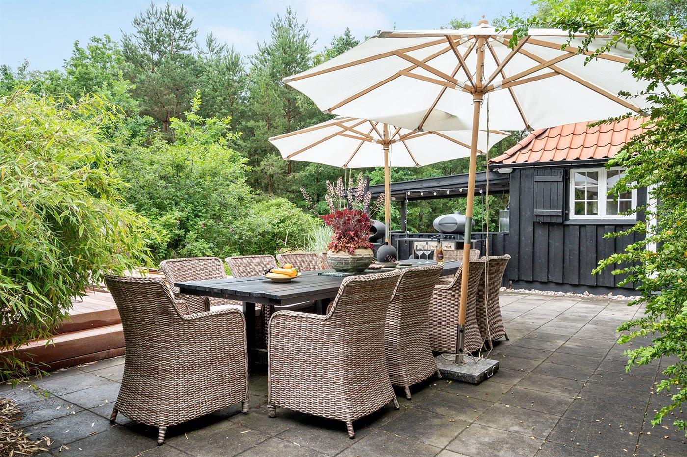 Auf einem großen, von hohen Bäumen umgebenen Grundstück, finden Sie dieses schöne Ferienhaus und 2 dazugehörende Gästehäuser. Es stehen große Terrassen, ein Badehaus mit u. a. Sauna und ein großer Außen-Swimmingpool (8 x 4 m) zur Verfügung. Der Swimmingpool ist im Zeitraum von der 22 KW bis zu einschl. 35 KW nutzbar. Zusätzlich zu dem schönen Ferienhaus gibt es 2 Gästehäuser mit Ausblick auf den Swimmingpool. Das eine ist mit Schlafzimmer mit Doppelbett und Badezimmer eingerichtet und das andere mit Doppelbett. Eine echte Ferienperle – hier können Sie sich vom Alltag erholen und es sich mit der Familie oder mit Freunden gemütlich machen.