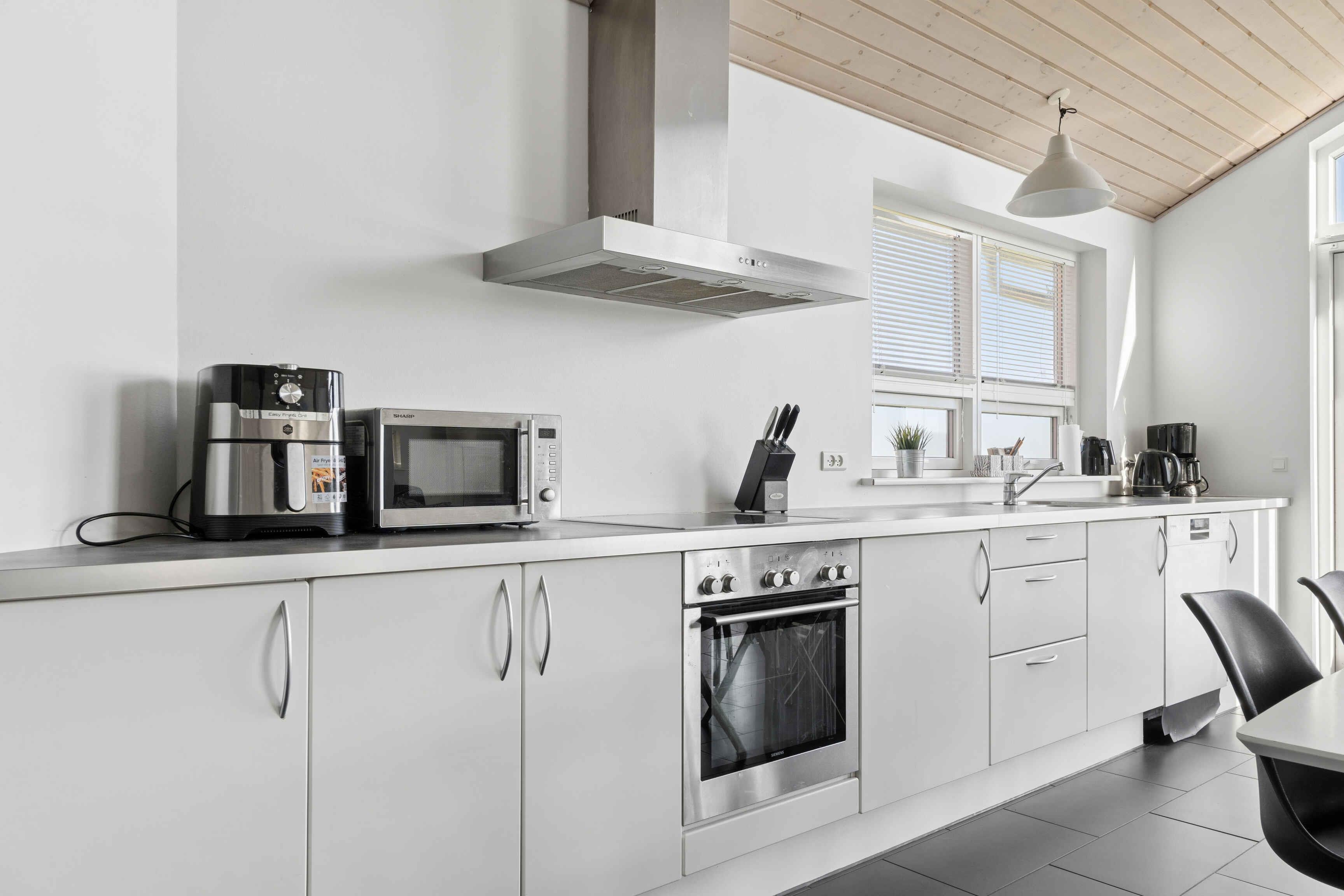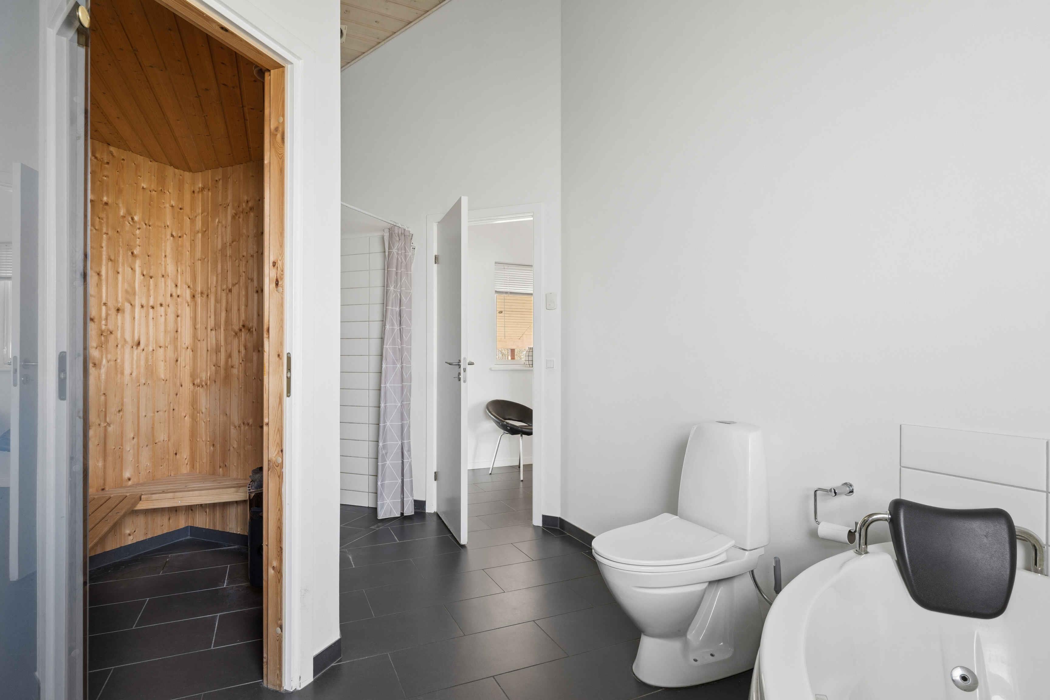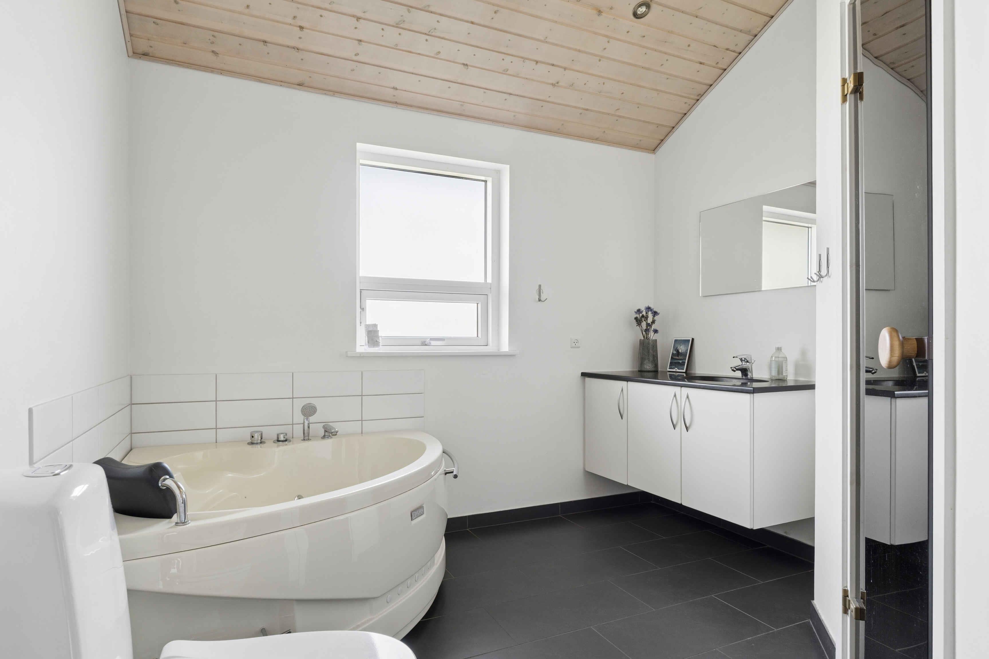 Ferienhaus mit Meerblick vom Haus und vom Grundstück, gelegen in einem ruhigen Feriengebiet. Das Haus liegt nicht weit von einem Kiesstrand entfernt und ca. 1.500 m von einem Sandstrand. Das Ferienhaus ist für 10 Personen geeignet, hat eine Wohnfläche von 122 m² und wurde 2010 erbaut. Es dürfen 2 Haustiere mitgebracht werden. Solaranlage vorhanden. Fußbodenheizung im gesamten Haus. Waschmaschine und Trockner stehen zur Verfügung. Gefrierkapazität 50 Liter. Außerdem gibt es einen Kaminofen. Für Kinder ist 1 Hochstuhl vorhanden. Das Ferienhaus liegt auf einem 990 m² großen Naturgrundstück. Entfernung zum Meer: 600 m. Der nächste Einkaufsladen ist 4.000 m entfernt. Ein Golfplatz befindet sich in 6.000 m Entfernung. Zum Haus gehören eine offene Terrasse sowie eine überdachte Terrasse. Grill vorhanden. Parkplatz am Haus. Es gibt insgesamt 4 Schlafzimmer. Die Schlafplätze verteilen sich auf 8 Schlafplätze in Doppelbetten und 2 Schlafplätze auf Matratzen, davon 2 auf dem Hausboden (Hems). Zusätzlich steht 1 Kinderbett zur Verfügung. Die Küche ist ausgestattet mit Kühlschrank, 4 Cerankochfeldern, Umluftofen, Mikrowelle und Geschirrspüler. Es gibt 2 Badezimmer mit Dusche und 2 Toiletten. Fußbodenheizung in beiden Badezimmern. Zur Entspannung steht ein Indoor-Whirlpool für 2 Personen zur Verfügung. Im Ferienhaus gibt es 1 Fernseher mit 1–3 dänischen und 1–3 deutschen Sendern. WLAN ist vorhanden.
