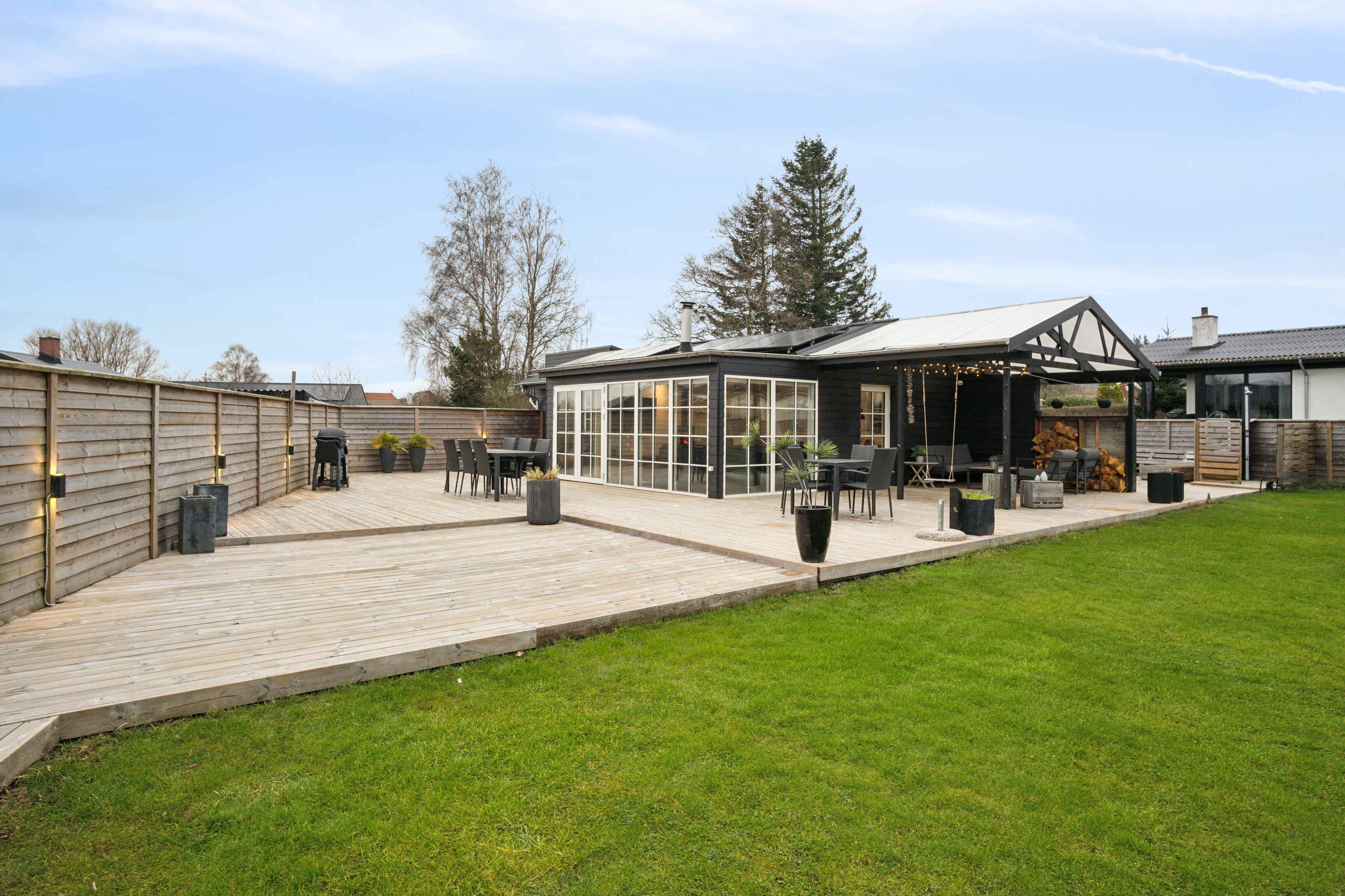 Gemütliches nordisches Ferienhaus mit Garten, Terrasse und Nähe zum Strand in Børkop, Dänemark.