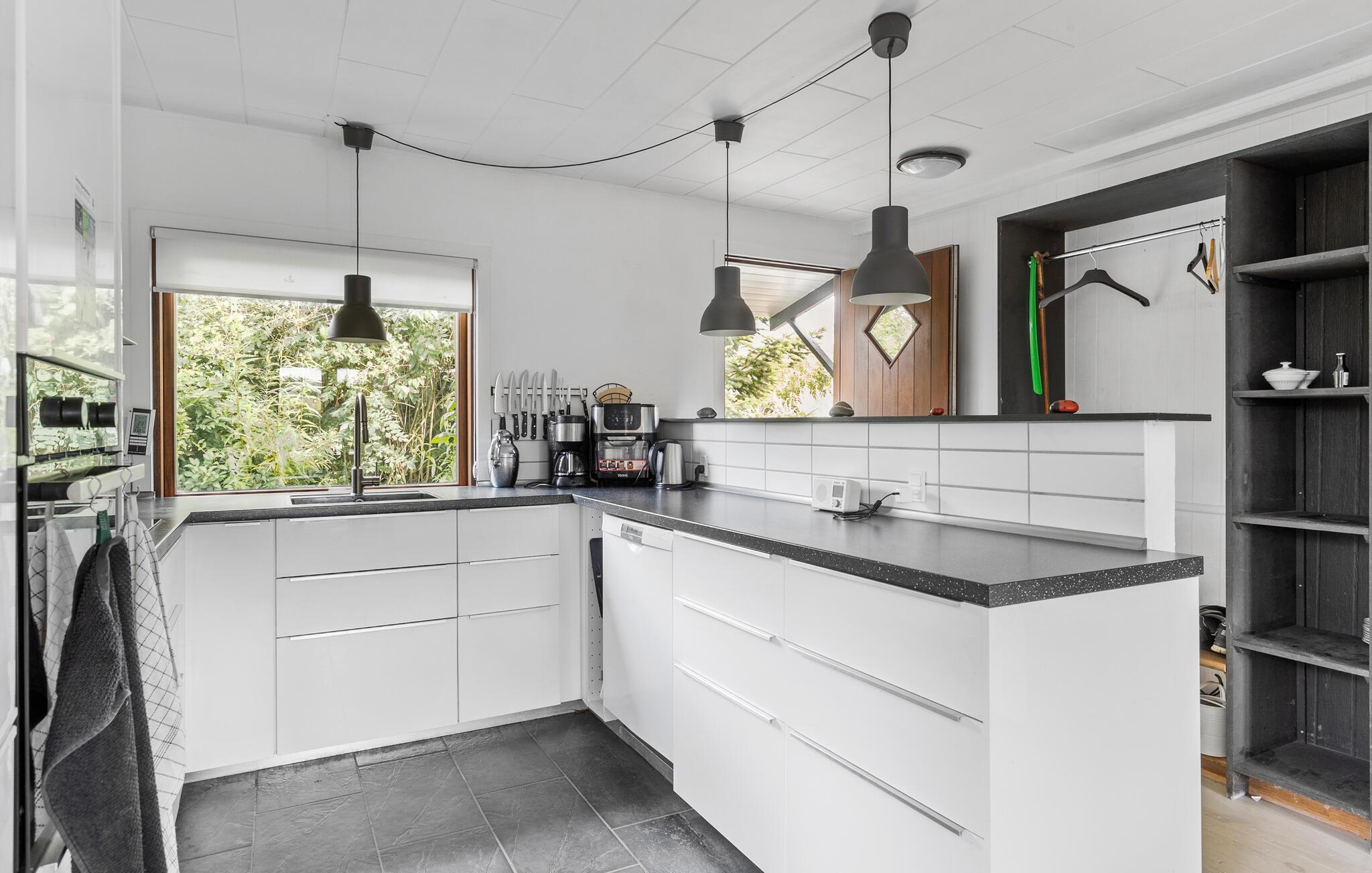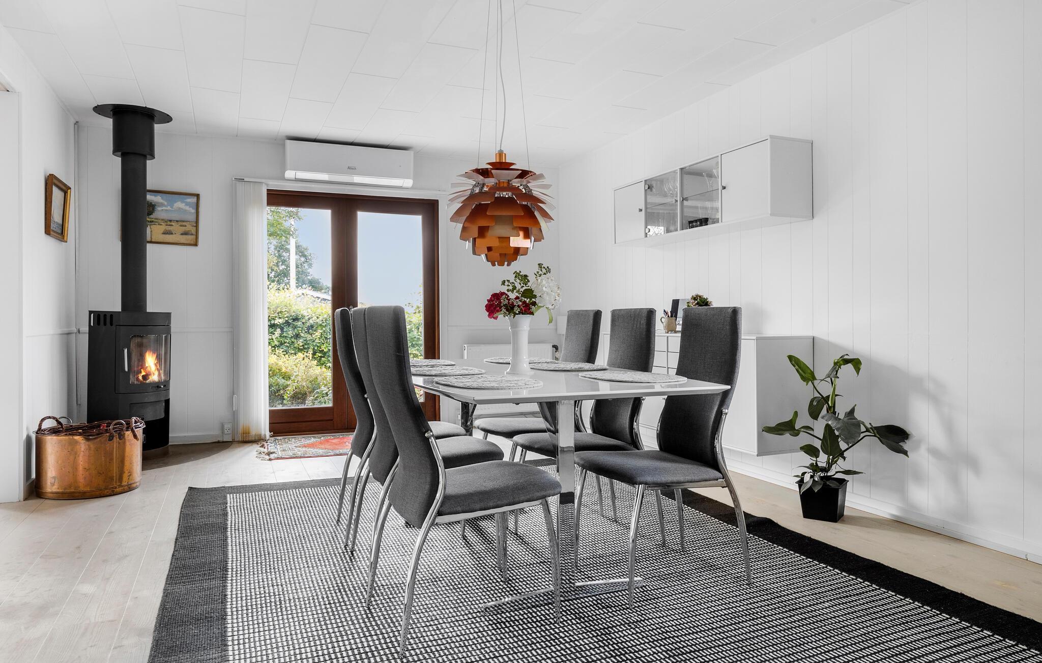 Ihr charmantes Ferienhaus am Båring Strand bietet viel Platz für die ganze Familie und lädt mit seiner hellen, eleganten Einrichtung zum Wohlfühlen ein. Starten Sie den Tag mit einem Frühstück im offenen Wohn- und Essbereich, der durch große Fenster viel Tageslicht hereinlässt. Nehmen Sie Platz am Esstisch und planen Sie die Aktivitäten des Tages oder entspannen Sie sich auf dem komfortablen Sofa. Die moderne Küche bietet alles, was Sie für gemeinsame Kochabende benötigen. Bereiten Sie hier leckere Gerichte zu und genießen Sie diese bei schönem Wetter auf der gemütlichen Terrasse, die sowohl sonnige als auch schattige Plätze bietet. Entspannen Sie sich in der ruhigen, geschlossenen Gartenanlage, während Ihre Kinder auf dem Rasen toben.
