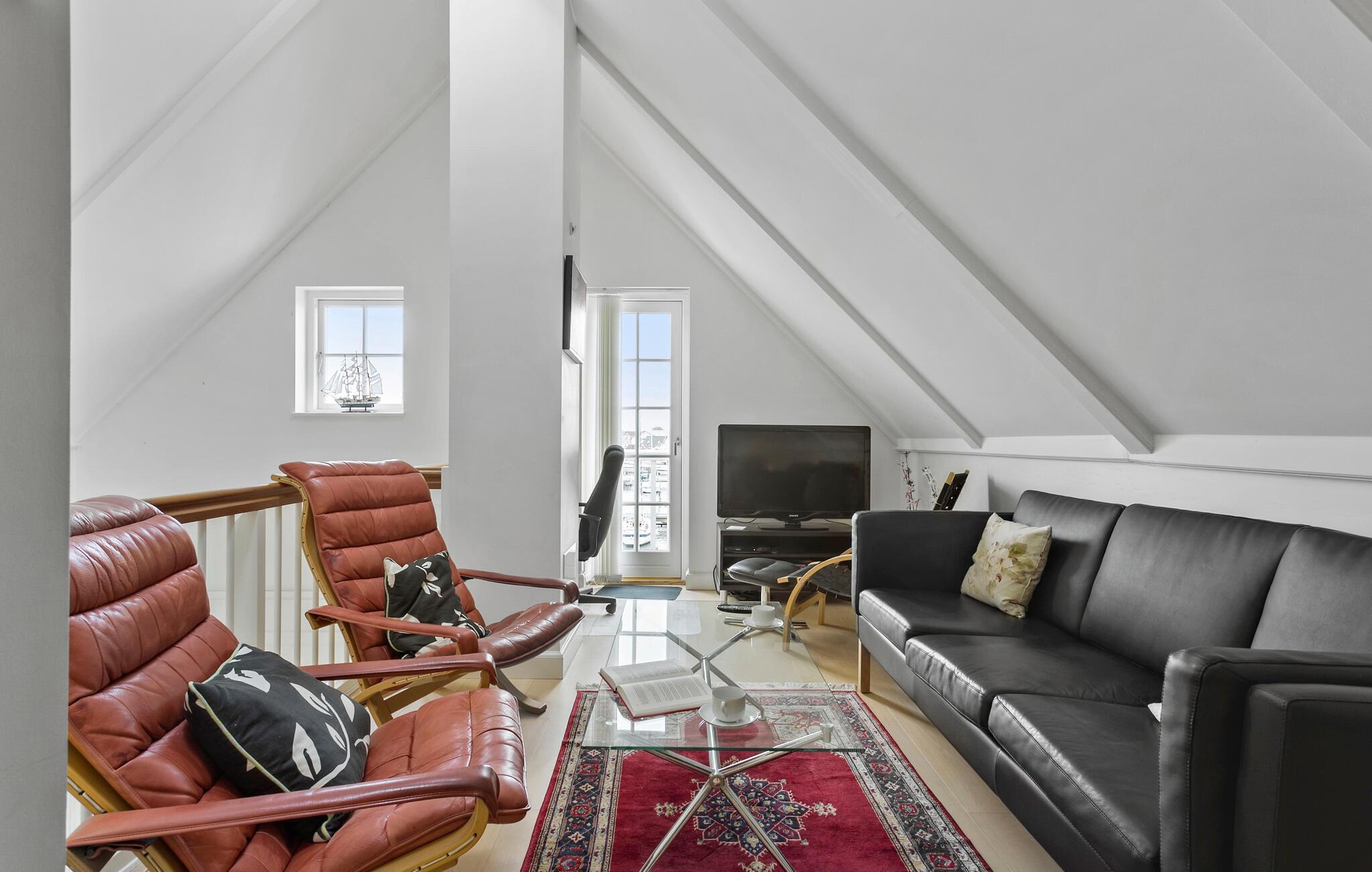 Die ruhige Lage am Hafen und das geschmackvolle Design bieten Ihnen eine einladende Atmosphäre und lassen Sie zur Ruhe kommen. Die hellen Räume sind hochwertige eingerichtet und verfügen über einen gemütlichen Holzofen, der für behagliche Abende sorgt. Farbenfrohe Kunst ziert die Wände und schafft ein Ambiente, dass Sie zum Entspannen auffordert. Die gut ausgestattete Küche und die stilvollen Wohnbereiche bieten Ihnen höchsten Komfort. Entspannen Sie in der Sauna oder der Whirlpool-Badewanne und lassen Sie Ihren hektischen Alltag hinter sich.