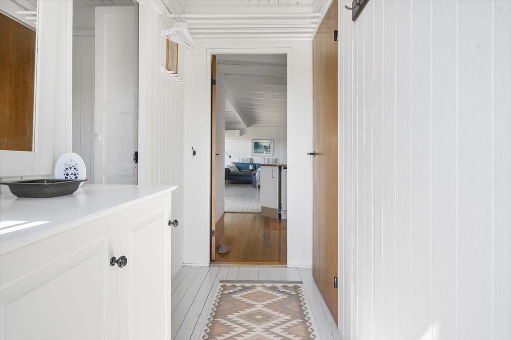 Schönes und schön gelegenes Ferienhaus auf einem abschüssigen Grundstück mit schöner Aussicht auf das Wasser und das schöne Farøbro. Das Haus liegt im schönen, ruhigen und landschaftlich reizvollen Bakkebølle, nur 300 Meter vom Bakkebølle Strand entfernt, einem gemütlichen Strand mit Gras, Sand und Badesteg.