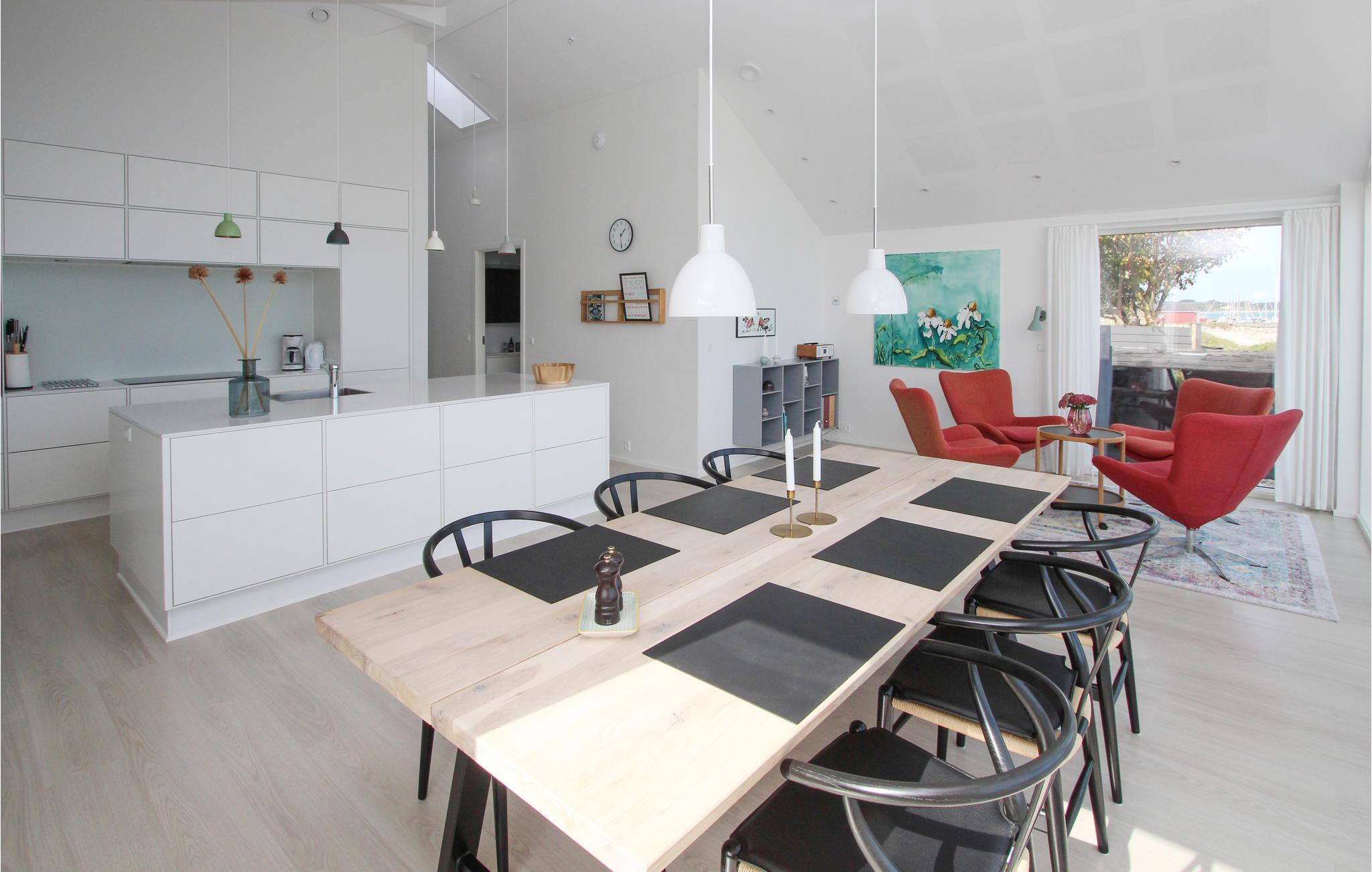 Im Urlaub in diesem zauberhaften Ferienhaus blicken Sie schon beim Frühstück auf das Meer unmittelbar vor Ihrem Fenster, dank großer Panorama-Glasfront kommt die Aussicht ganz hervorragend zur Geltung. Später, beim Entspannen in den bequemen und stylischen Sesseln, können Sie den Blick ungehindert in die Ferne zum Horizont schweifen lassen - eine bessere Art, den Alltag hinter sich zu lassen, gibt es kaum. Rund um das Ferienhaus gibt es mehrere charmante Plätze, um beim Plätschern der Wellen die Sonnenstrahlen zu genießen. Erfrischen Sie sich an warmen Tagen im kühlen Nass und nehmen Sie anschließend in einem Liegestuhl auf der Terrasse Platz, lesen Sie ein gutes Buch oder machen Sie ein Nickerchen, Sie können am Tisch im Freien auch bei bester Aussicht zusammen essen.