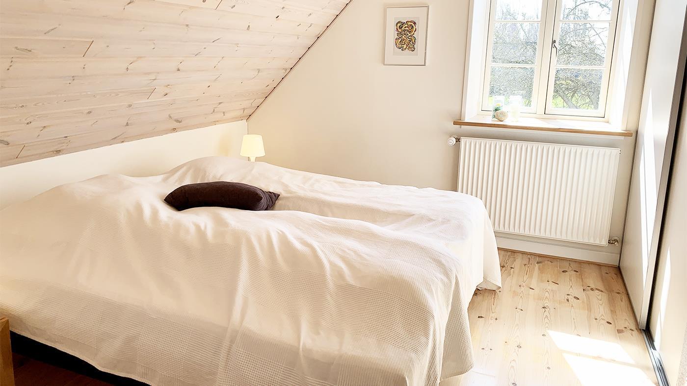 Auf der ersten Etage befinden sich vier Schlafzimmer mit Doppelbetten, wobei zwei der Zimmer über ein Juniorbett verfügen. Auf dem Flur gibt es einen gemütlichen Aufenthaltsraum, in dem man über Chromecast auch auf den Fernseher streamen kann, sodass man sich auch hier auf dem Schlafsofa entspannen kann. Es gibt ein Badezimmer mit Duschkabine und Badewanne. Ein schönes Ferienhaus in guter Lage im Zentrum von Ballen mit Platz für die ganze Familie.