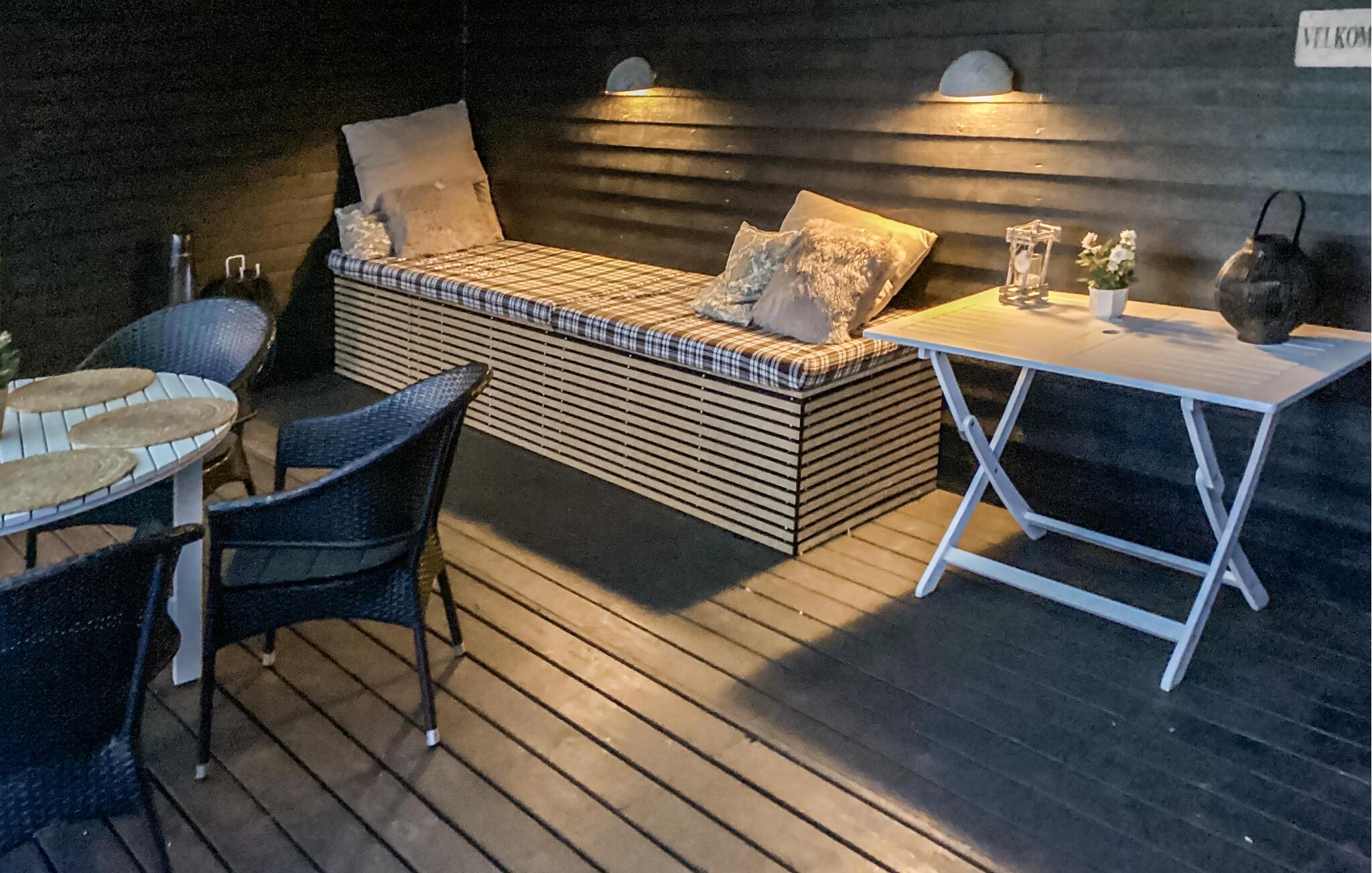 Verbringen Sie entspannte Stunden auf der großzügigen, eingezäunten und teilweise überdachten Holzterrasse mit fantastischem Meerblick. Genießen Sie Ihr Frühstück an der frischen Luft oder nutzen Sie den Grill für gesellige Abende.
