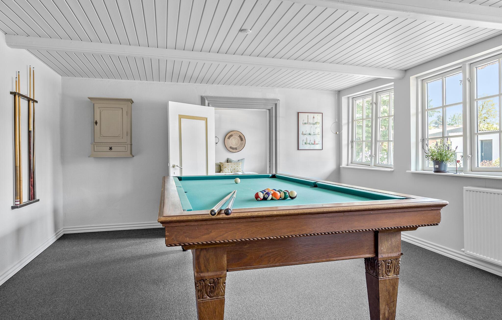 Ihr Ferienhaus in Besser auf der idyllischen dänischen Insel Samsø mit traditionellem Reetdach und gemütlicher Einrichtung lädt Sie ein, sich zu entspannen und das Inselleben in vollen Zügen zu genießen. Der großzügige Innenhof mit Sitzmöglichkeiten ist ideal für entspannte Stunden im Freien. In der großen Küche können Sie morgens ganz einfach ein leckeres Frühstück für die ganze Familie zubereiten. Das geräumige Wohnzimmer ist hell und freundlich eingerichtet und bietet Ihnen bequeme Sofas und Sessel. Sie haben hier sogar Ihr eigenes Billardzimmer. Spielen Sie eine Partie oder fordern Sie die Familie im Tischtennis oder Dart heraus.