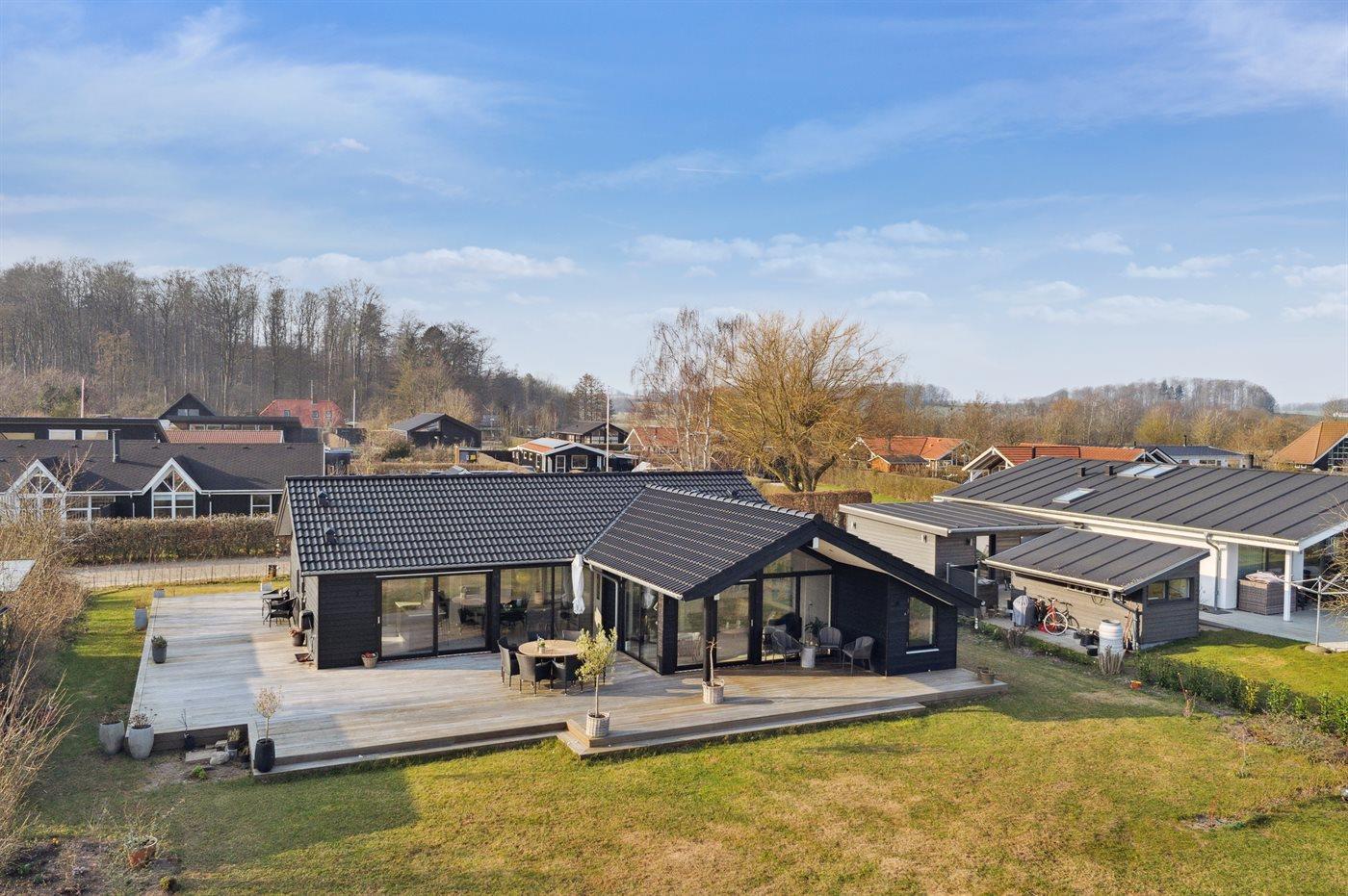 Modernes Ferienhaus in Bjert mit Meerblick und direktem Zugang zum kinderfreundlichen Strand.