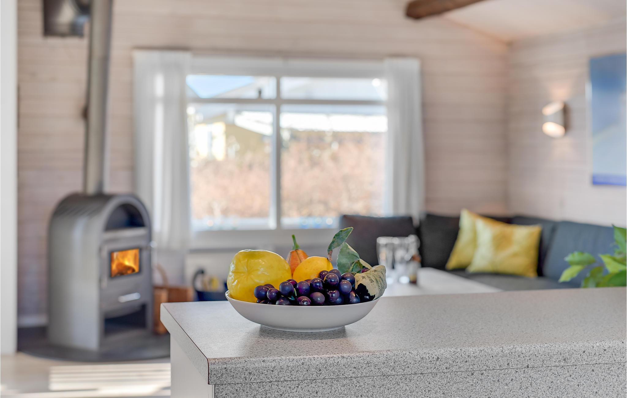 Charmantes Ferienhaus am Strand von Binderup Strand mit Kamin und überdachter Terrasse für entspannte Urlaubstage.