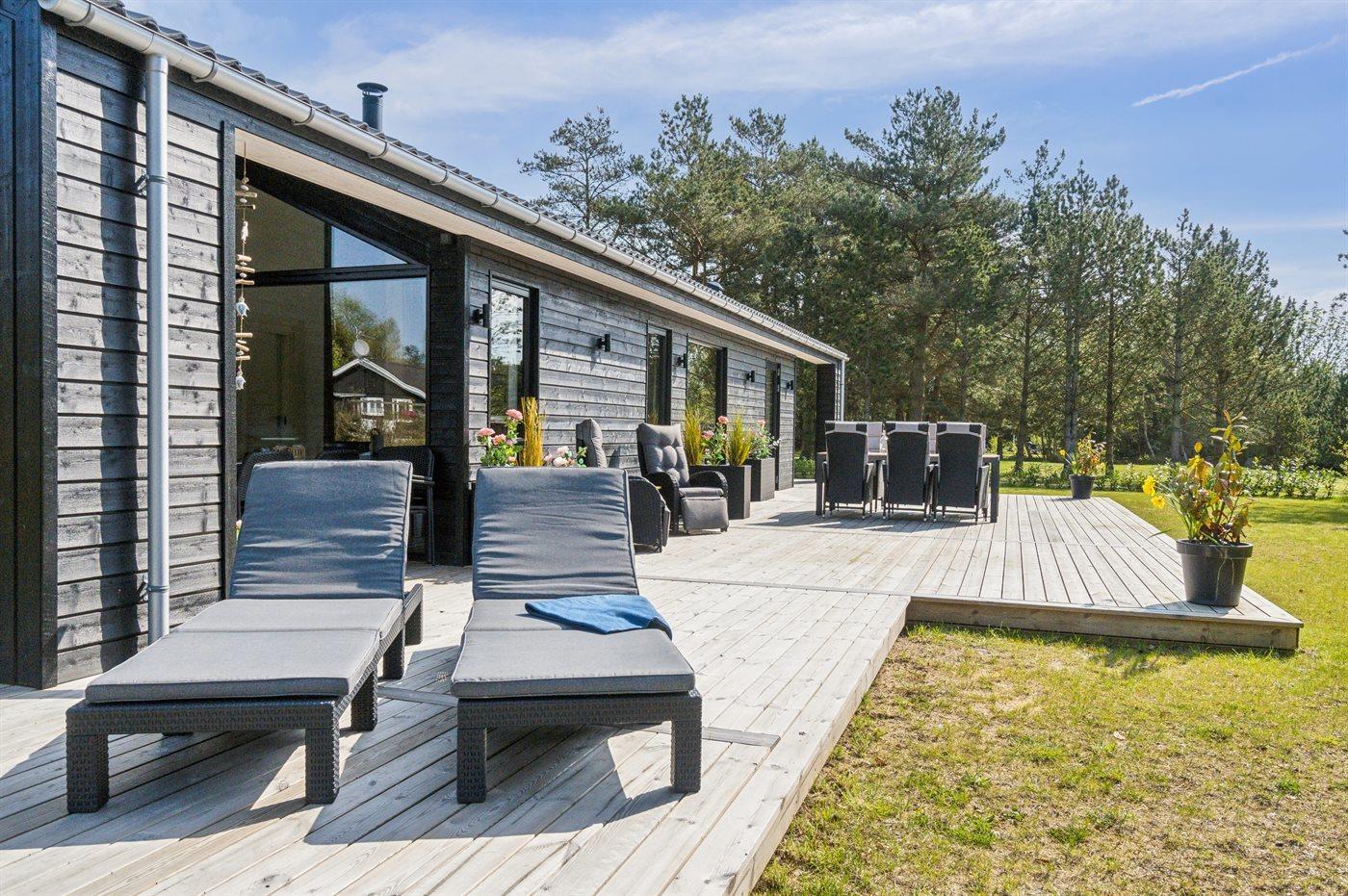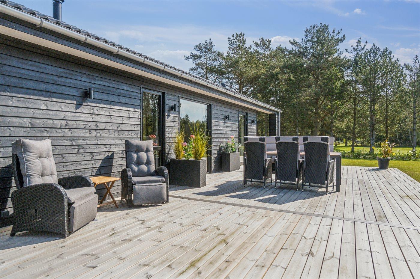 Im Inneren präsentiert sich das Sommerhaus genau so, wie man es von einem neuen und topmodernen Haus erwartet. Das Herzstück des Hauses ist die große und helle Küche/Esszimmer und Wohnzimmer in einem, mit viel Tageslicht und direktem Zugang zur schönen Terrasse. Das Sommerhaus ist sehr gut gestaltet, und es gibt viel Platz für zum Beispiel eine Familie mit Kindern, die die Großeltern mit in den Urlaub nehmen möchten - die Möglichkeiten sind vielfältig in diesem schönen Sommerhaus.