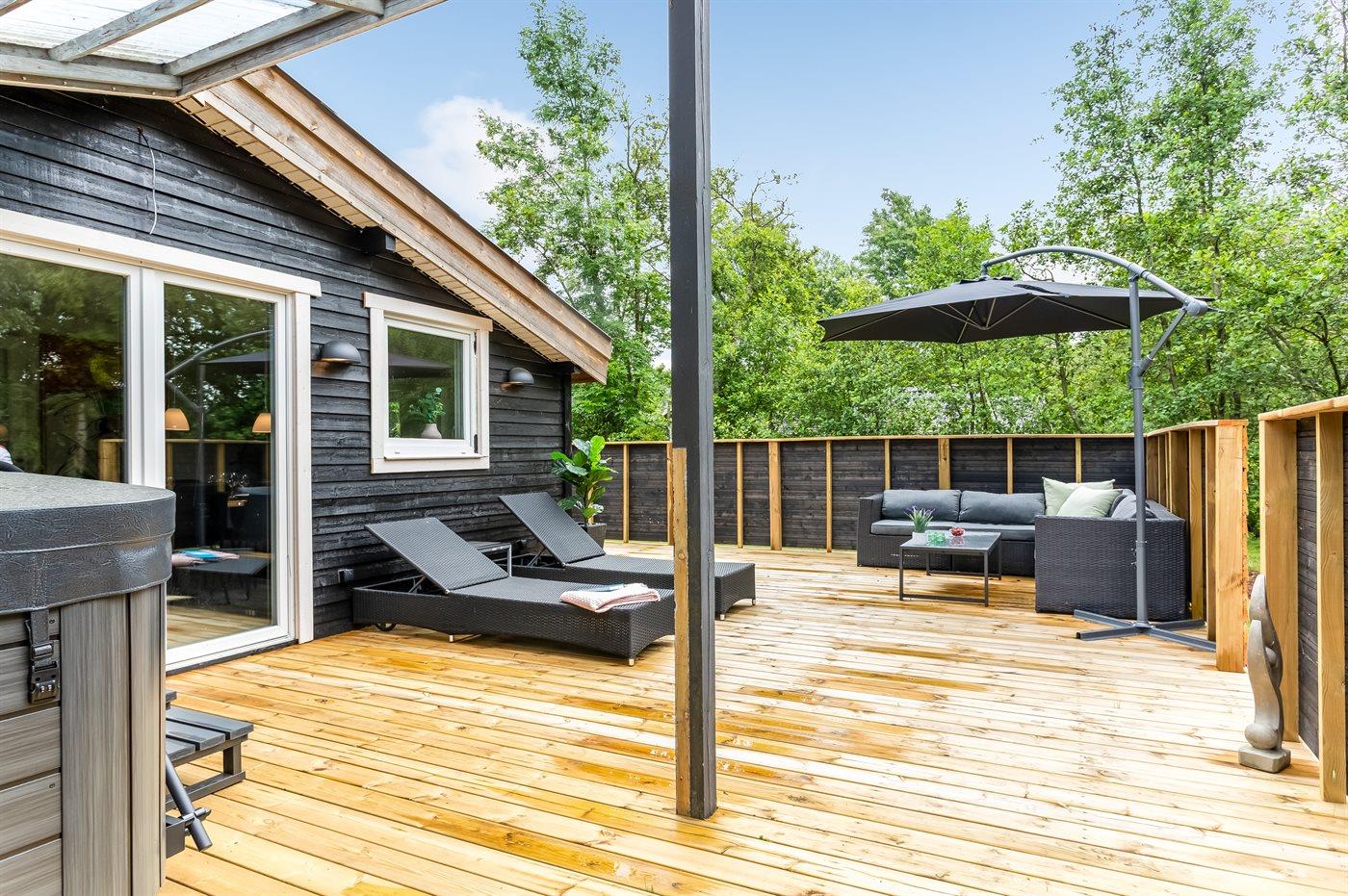 Komfortables, tierfreundliches Ferienhaus mit großer Terrasse und Whirlpool nahe Hals, Dänemark.