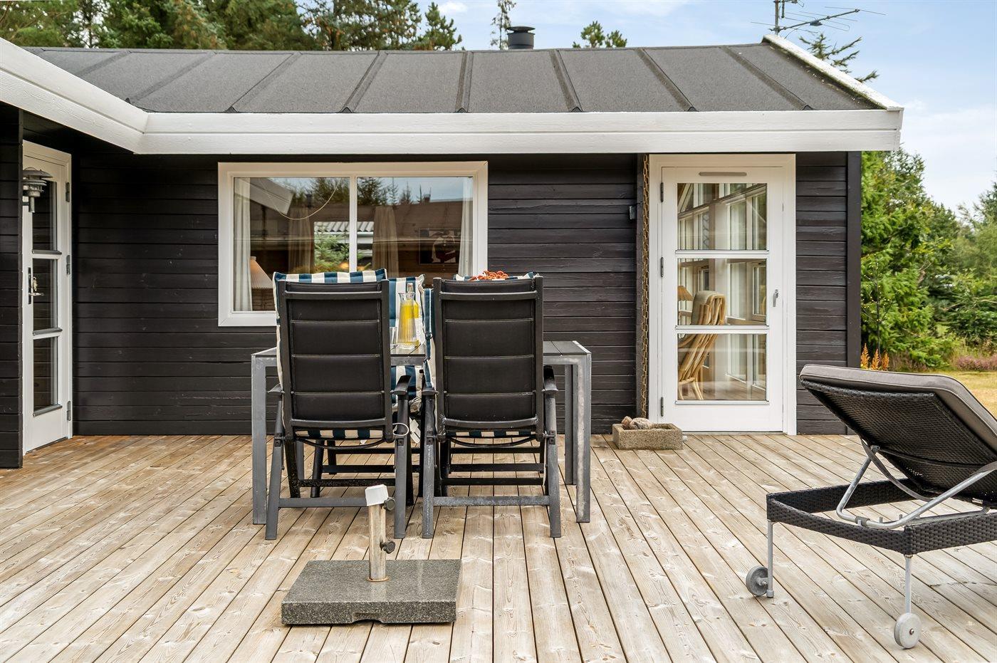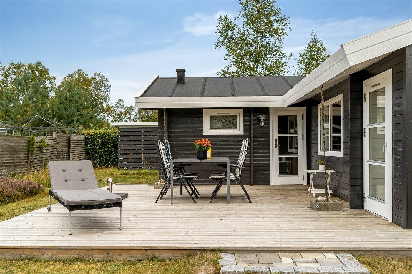 Sehr gemütliches Ferienhaus in Holz. Eine schöne Terrasse mit Gartenmöbeln und Sonnenliegen. Das Ferienhaus liegt nicht weit vom kinderfreundlichem Sandbadestrand, Bisnap Strand.