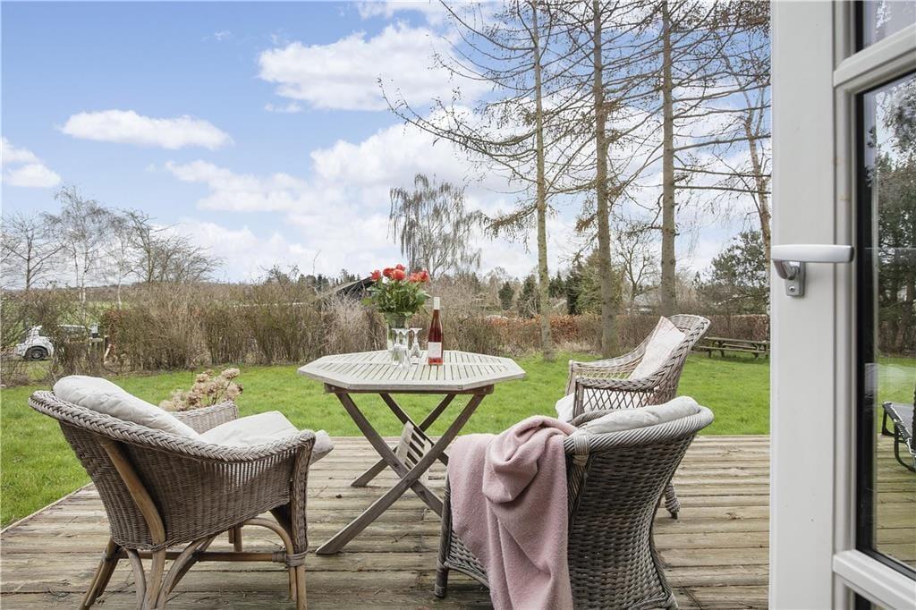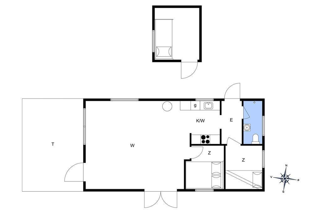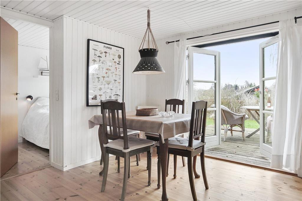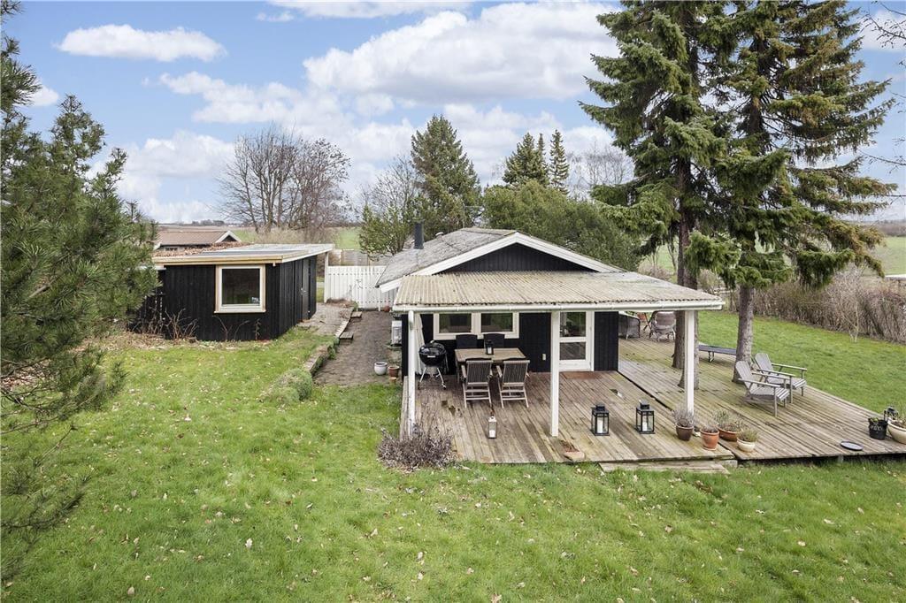 Das Ferienhaus empfängt Sie mit einem kombinierten Küchen- und Wohnbereich. Die Küche verfügt über einen Herd, einen Geschirrspüler und einen Kühlschrank mit Gefriermöglichkeit. Im gemütlichen Wohnraum erwarten Sie Ausgänge auf die Terrassen, ein Sofa ein Kamin und ein Fernseher mit dänischen Programmen und Chromecast. Ein Badezimmer mit einer Dusche steht ebenfalls zu Ihrer Verfügung. Die Schlafplätze verteilen sich auf einen Schlafraum mit einem Doppelbett und einen Schlafraum mit ein Einzelbett und ein obere Liege. Des weiteren steht für Sie ein Einzelbett im angrenzenden Nebengebäude bereit. Das Haus wird mittels des gemütlichen Kamins und mittels Elektroheizungen beheizt.