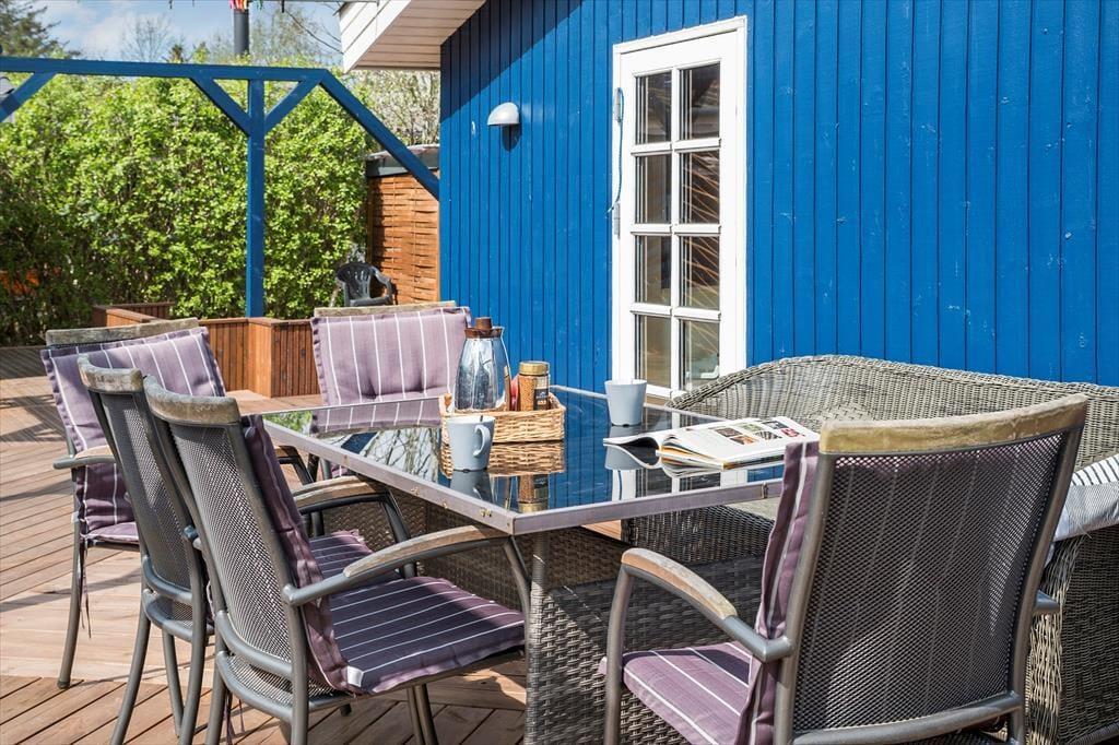 Genieße das Leben im Freien: Von mehreren Räumen des Hauses gelangen Sie direkt auf die schöne neue Terrasse, die rund um das Haus führt – ideal, um bei einer Tasse Kaffee zu entspannen oder ein gutes Buch zu genießen. Der Garten lädt zu Spielen und Aktivitäten ein, und es gibt eine gemütliche Feuerstelle, an der Sie abends die Sommerstimmung genießen können. Unternehmen Sie auch einen kurzen Spaziergang zum Strand für ein erfrischendes Bad oder einen gemütlichen Strandbesuch.