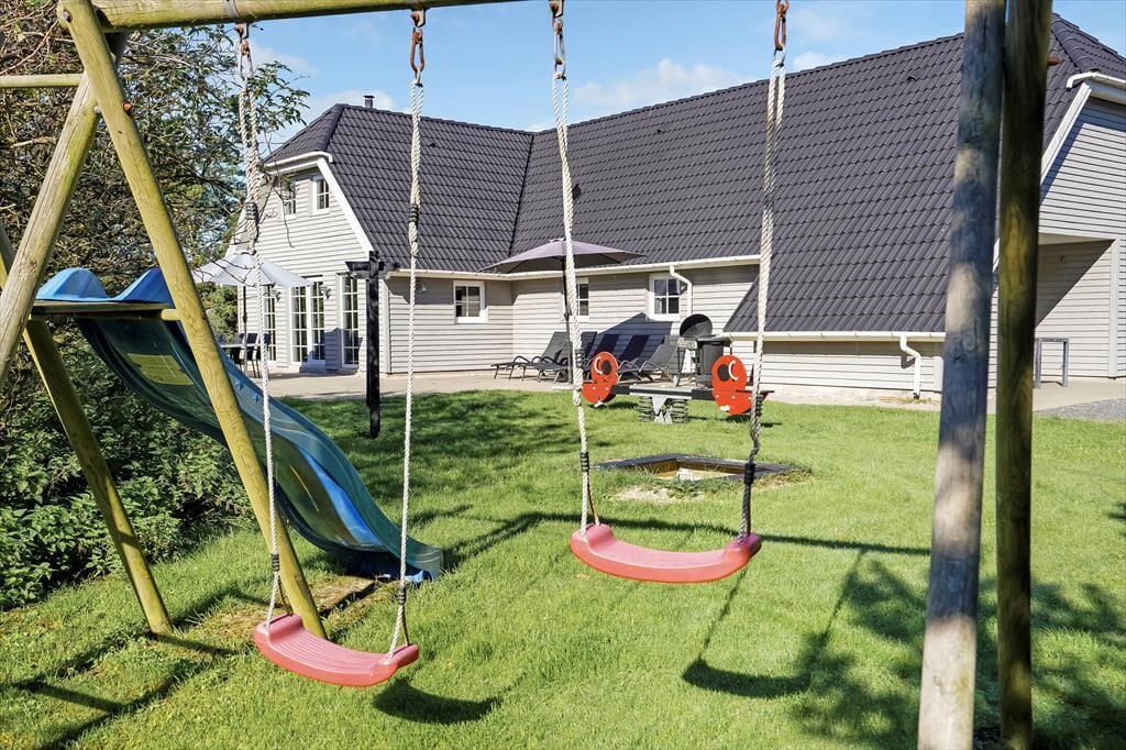 Die Außenbereiche eignen sich genau wie das Innere des Hauses perfekt für zahlreiche Urlaubsgäste. Das große Grundstück liegt ein wenig zurückgezogen vom Weg und bietet Ihnen mit seiner Schotterfläche gute Parkmöglichkeiten. Zu mehreren Seiten hin sind die Grundstücksränder dicht bewachsen, wodurch Sie sich auf den sonnenverwöhnten Terrassenflächen ungestört und nach Herzenslust frei entfalten können. Die weitläufige Grünfläche lädt mit einem Fußballtor zu Ballspielen ein. Dank des vorhandenen Sandkasten, des Spielhauses und der Schaukel ist selbst bei den kleinsten Urlaubern für Spaß und Abwechslung gesorgt.