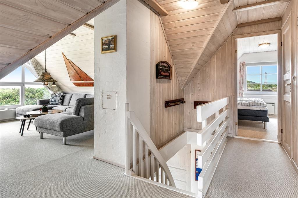 Die 174 m² umfassende Wohnfläche dieses Urlaubsdomizil erstreckt sich über zwei Etagen und bietet mit zwei Badezimmern und vier Schlafräumen ausreichend Platz für die gesamte Familie - oder auch für gute Freunde, die gern einen gemeinsamen Urlaub verleben möchten. Einer der Schlafräume verwöhnt Sie mit einer schönen Aussicht auf den bekannten Leuchtturm Blåvandshuk Fyr und im Wohnraum des Obergeschosses wird Sie die Aussicht auf die Nordsee faszinieren. Im Erdgeschoss begrüßt Sie der schöne Küchen- und Essbereich. Direkt daneben lockt der Poolraum, in dem Sie und Ihre Kinder sicherlich zahllose schöne, vergnügte Momente verleben werden. Ihre Schwimmeinheiten im Pool können sich hervorragend mit wohligen Wellnesseinheiten abwechseln, die Sie im Whirlpool und in der Sauna genießen. Pure Erholung für Körper und Seele ist Ihnen in diesem Haus also sicher.
