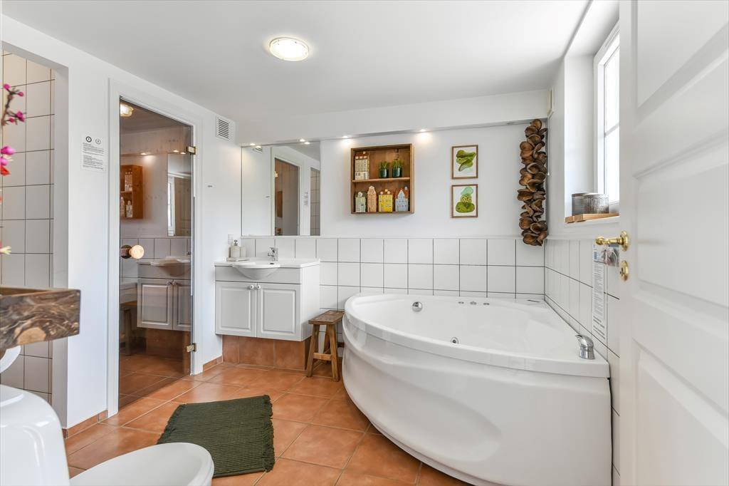Das Ferienhaus auf Vandflodvej 2, 19 hat eine wirklich gemütliche Atmosphäre, und die Räume wurden erfolgreich mit klassischer Einrichtung gestaltet, die gut in die helle Umgebung passt. Tagsüber kannst du dich im Sofa-Bereich des Wohnzimmers entspannen oder mit deinen Liebsten am Esstisch sitzen – es sei denn, ihr seid gerade dabei, im schönen Küchenbereich zu kochen oder habt euch auf der Terrasse zum Sonnenbaden niedergelassen. Sollte das Wetter kühl sein, kannst du dich auch im Whirlpool des Hauses zurücklehnen oder in der Sauna aufwärmen. Die beiden Wellness-Einrichtungen findest du im Badezimmer im Erdgeschoss, während es im Obergeschoss ein zusätzliches Badezimmer gibt und hier auch die zwei schönen Schlafzimmer des Hauses liegen.