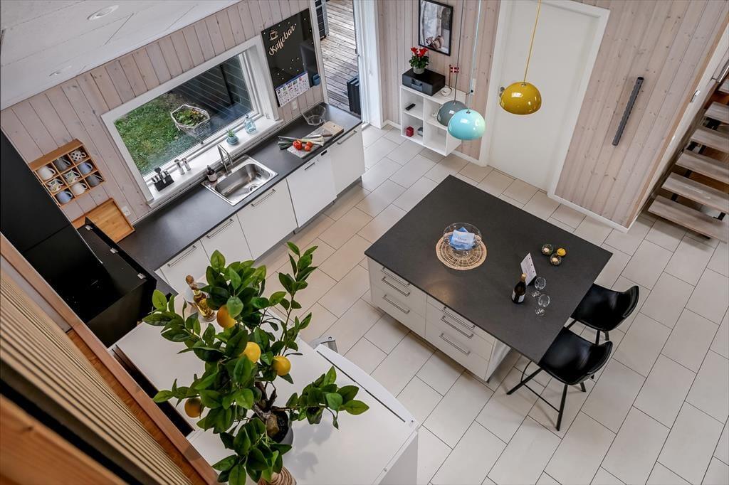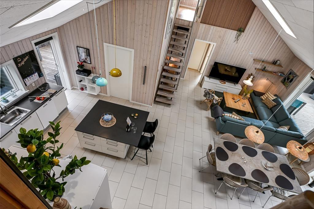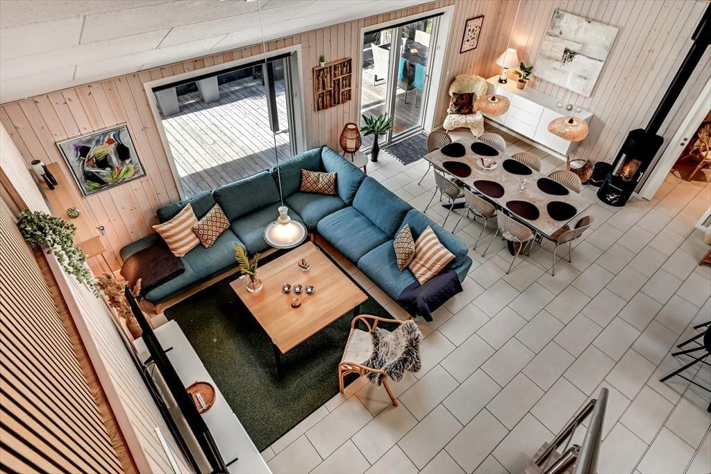 Beim Betreten dieses modernen Ferienhauses empfängt dich eine Einrichtung voller Qualität und durchdachtem Design. Dachschrägen und Oberlichter sorgen für ein wunderschönes Licht, das die Räume luftig und einladend wirken lässt. Küche, Essbereich und Wohnzimmer gehen elegant ineinander über und bilden einen natürlichen Treffpunkt, an dem Platz für gemeinsames Beisammensein und Entspannung ist. Die moderne Küche lädt zu gemütlichem Kochen ein, während sich der Rest der Familie am Esstisch oder auf dem Sofa zu einer Runde Karten versammelt. Wenn der Abend hereinbricht, kannst du ein entspannendes Bad im hauseigenen Innen-Whirlpool nehmen und die Ruhe genießen. Das Ferienhaus verfügt über zwei schöne Badezimmer, eines davon besonders geräumig – ideal für die ganze Familie. Die beiden Dachböden sorgen für zusätzlichen Charme – einer ist für Spiel und Spaß eingerichtet, der andere mit Stehhöhe und Treppe als zusätzliches Schlafzimmer nutzbar.