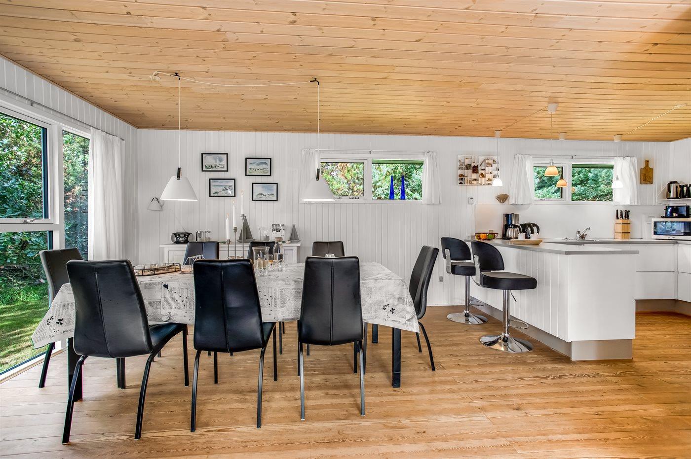 Dieses Ferienhaus befindet sich in bester Lage mitten in Blåvand, ganz in der Nähe der Nordsee. Durch die zentrale Lage können Jung und Alt optimal die Stadt, die Natur und das Meer genießen. Das Haus liegt am Ende einer Sackgasse, in der man die Kinder beruhigt spielen lassen kann. Zum Haus gehört eine schöne, große Holzterrasse, auf der Sie den Sommer genießen können. Der Mittelpunkt des Hauses ist das schöne Esszimmer, das zu langen Gesprächen, gemütlichem Beisammensein und Brettspielen einlädt. Letztere liegen im Ferienhaus für Sie bereit. Das Haus verfügt über eine schöne Wohnküche und eine tolle, moderne Küche. Im Wohnzimmer kann die gesamte Familie den Kamin oder eine gute Familiensendung im Fernsehen genießen. Das Haus hat schöne, helle und einladende Zimmer, die auch jeweils über Stauraum verfügen.