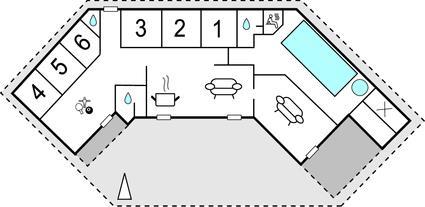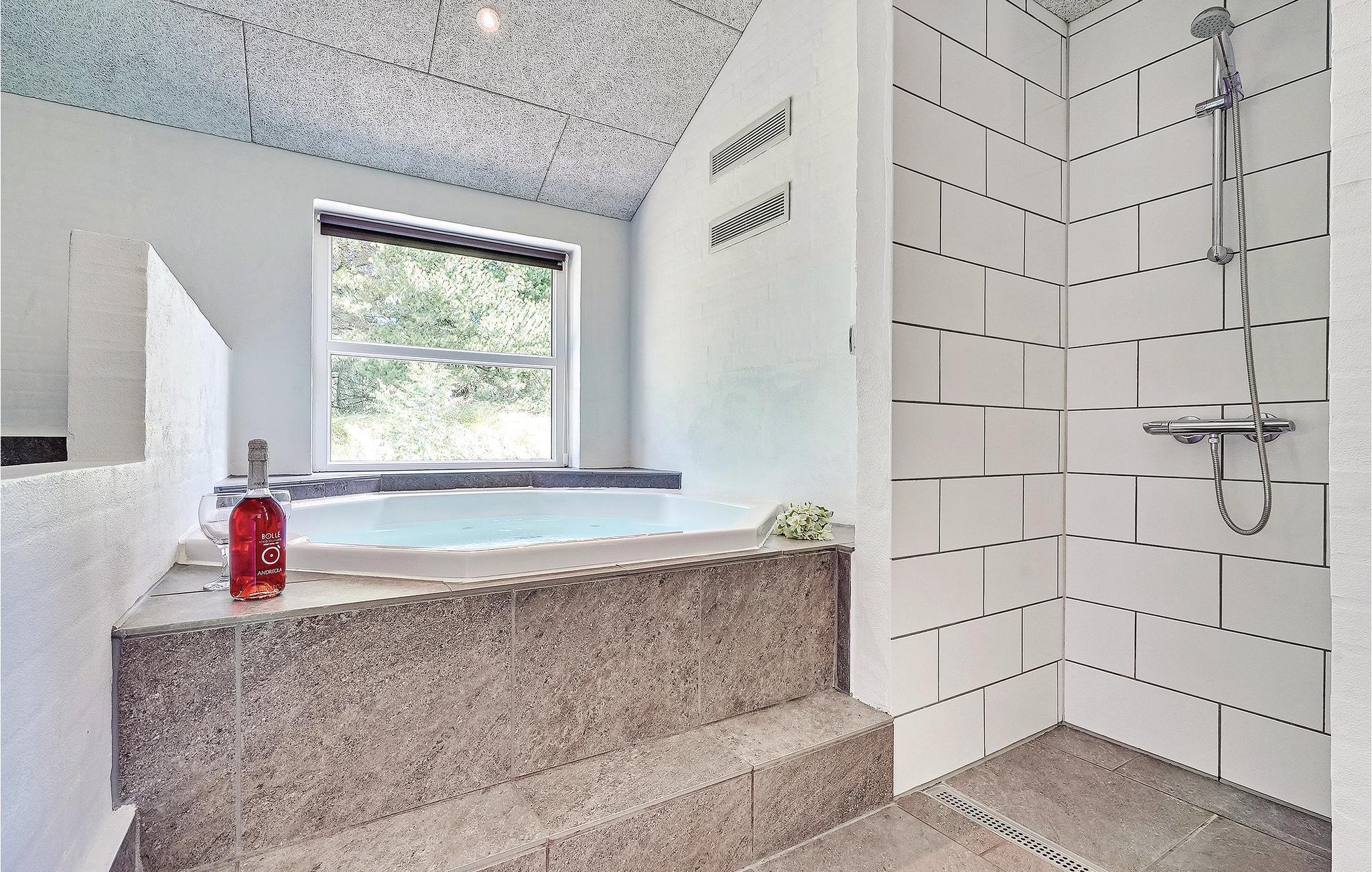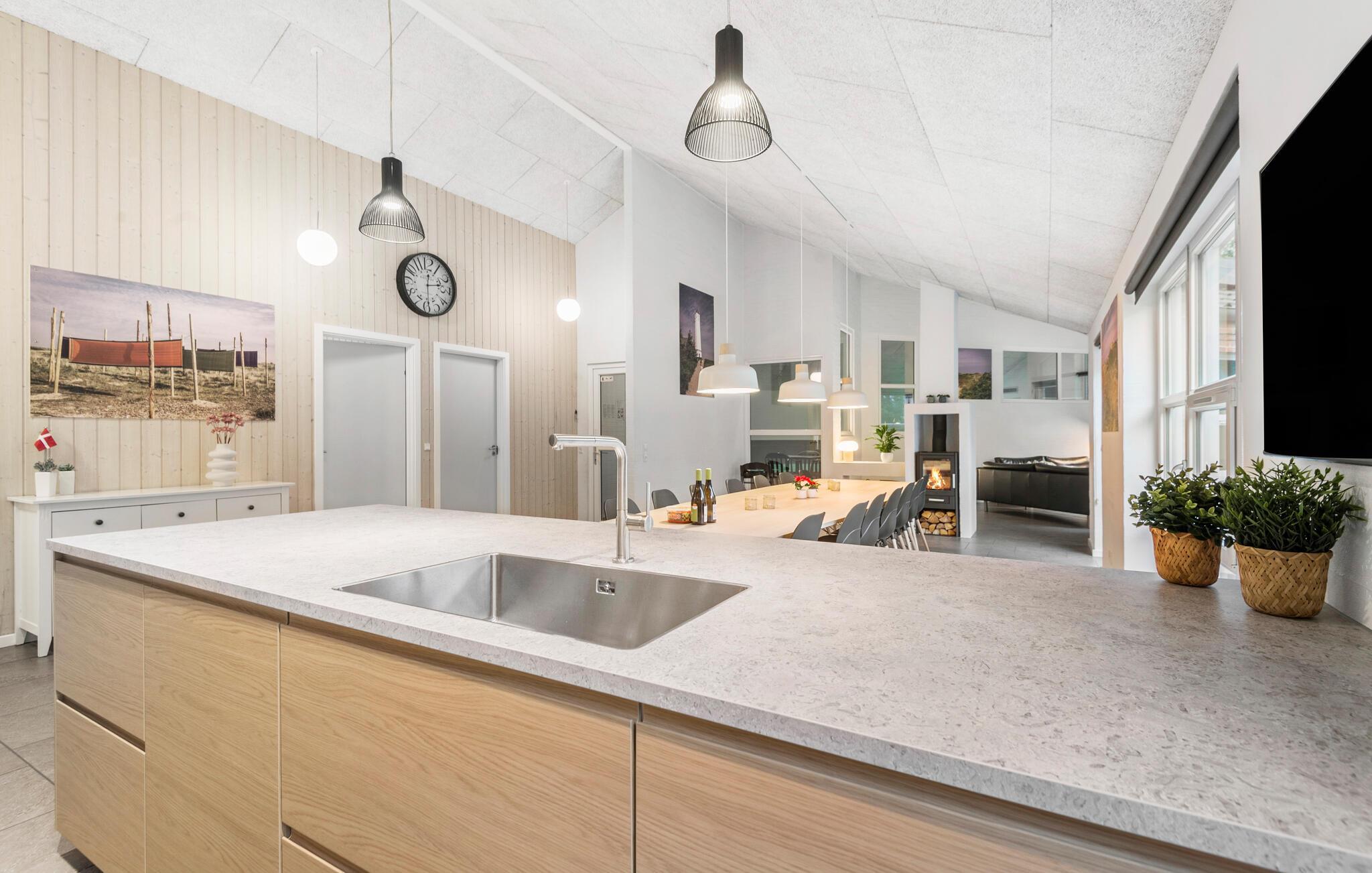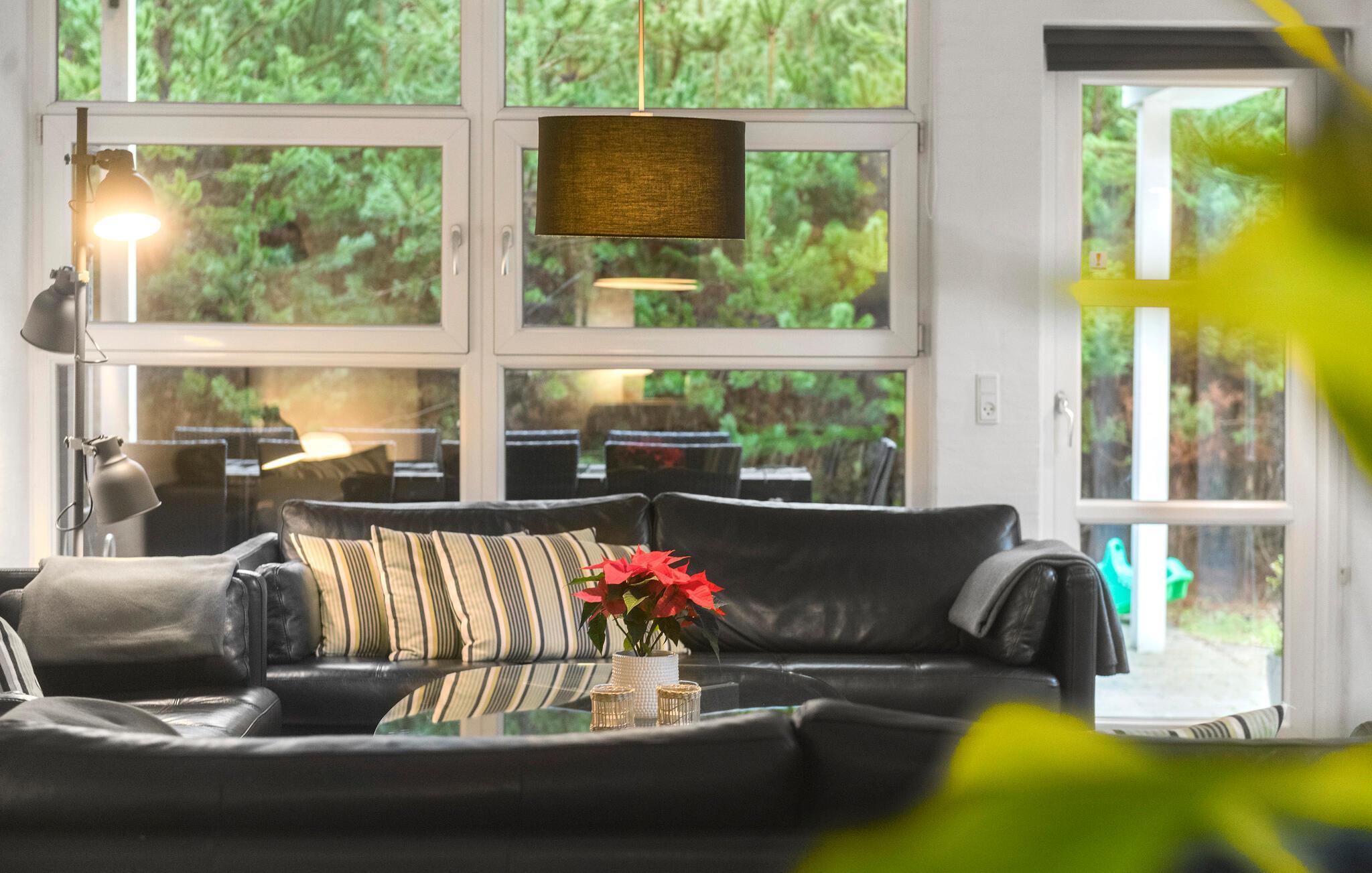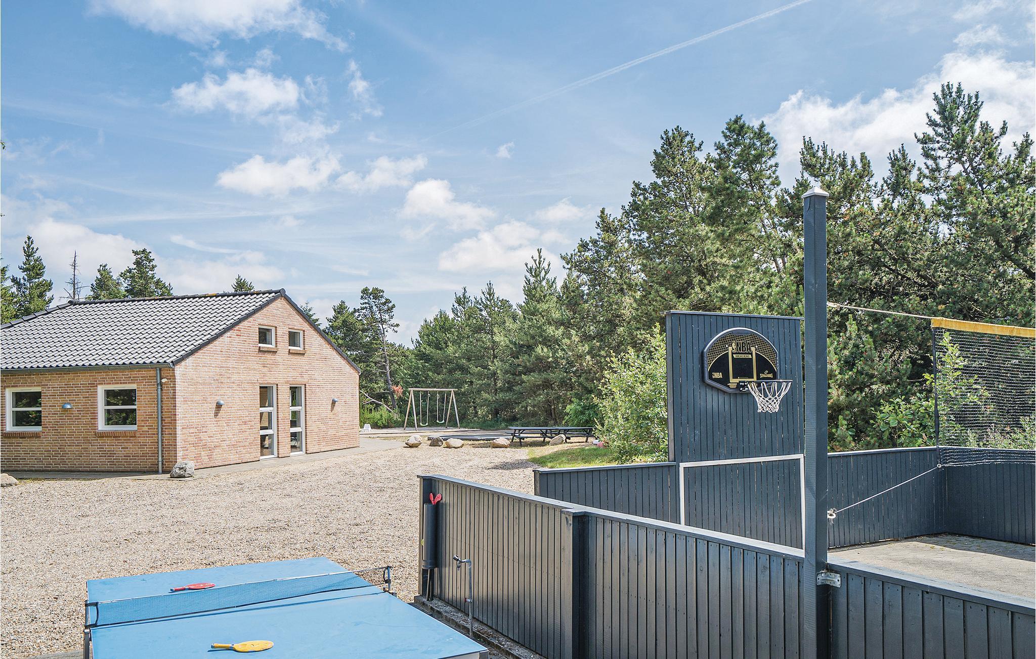 Schönes Haus mit durchdachter Architektur. Es erwartet Sie auf einem ungestörten Naturgrund, der für jedes Alter Spaß und Entspannung bietet. U. a. können Sie auf ihm Fußball oder Basketball spielen. Die Küche ist das Herz des Hauses, sie ist ein herrlicher Platz zum Versammeln, von ihr und dem Wohnbereich können Sie in den Poolraum blicken. Für Unterhaltung sorgt außerdem der Aktivitätsraum. Im Poolraum sind neben Whirlpool und Sauna auch extra Duschen vorhanden. Rund um das Haus gibt es große Terrassen zum Relaxen. Das Haus ist sehr gut isoliert und wird ausschließlich mit Erdwärme geheizt. Obwohl das Haus groß ist, brauchen Sie nicht mit erhöhten Heizkosten rechnen. Ein Boxer Max TV-Abonnement sorgt für viele dänische Fernsehsender.