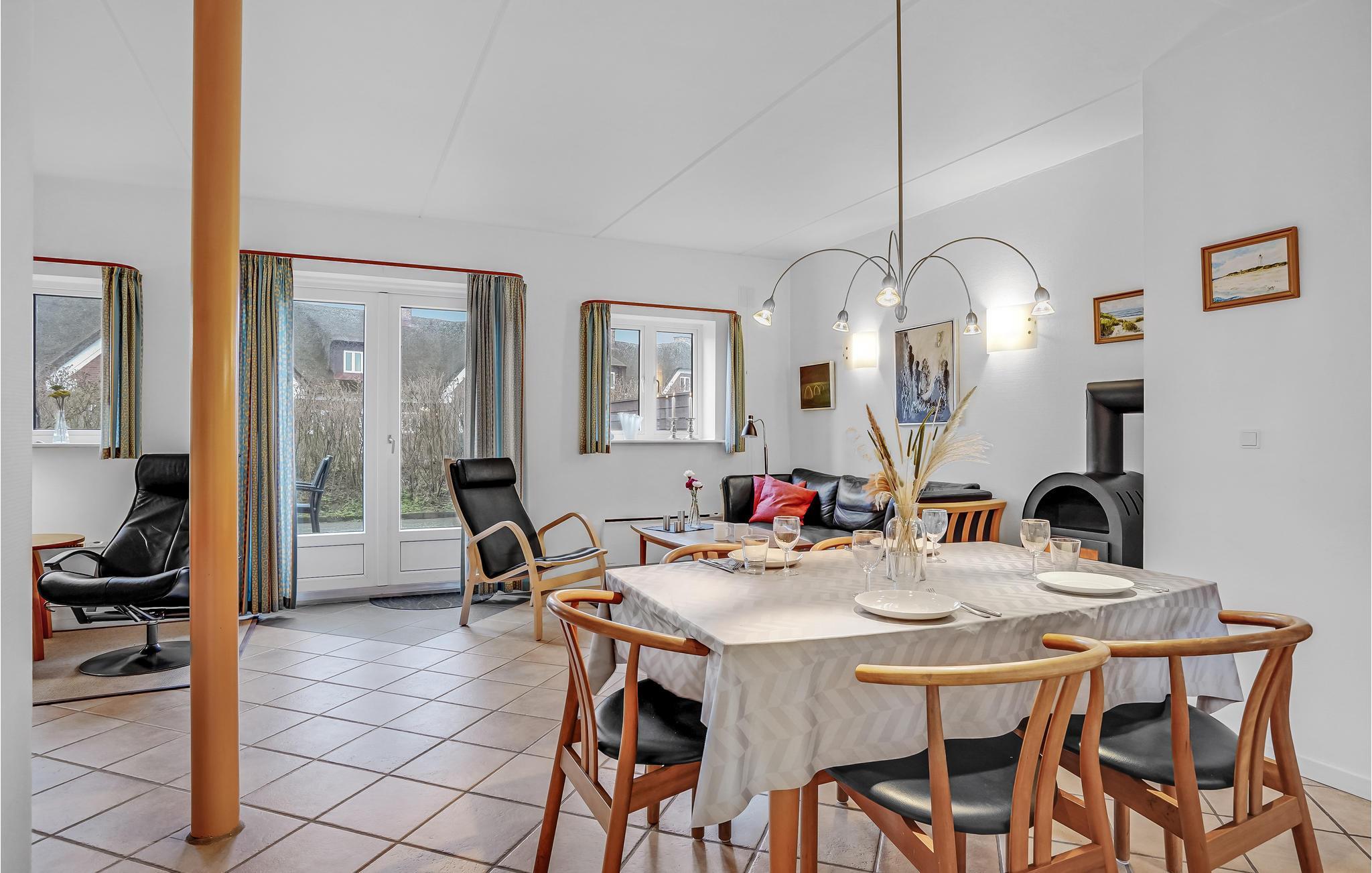 Ein gemütliches reetgedecktes Reihenhaus im Herzen Blåvands gelegen. Der offene Küchen-Wohnbereich liegt im Erdgeschoss, im Obergeschoss befinden sich 3 Schlafzimmer, sowie ein Badezimmer. Eine kleine gemütliche windgeschützte Terrasse lädt zum Sonnenbaden ein. Es gibt gute Restaurants, ein Pub, Airhockey, ein gratis Spielland für Kinder, Spielmaschinen und Pooltische. Der herrlich weiße Sandstrand erstreckt sich vom Leuchtturm bis nach Skallingen.