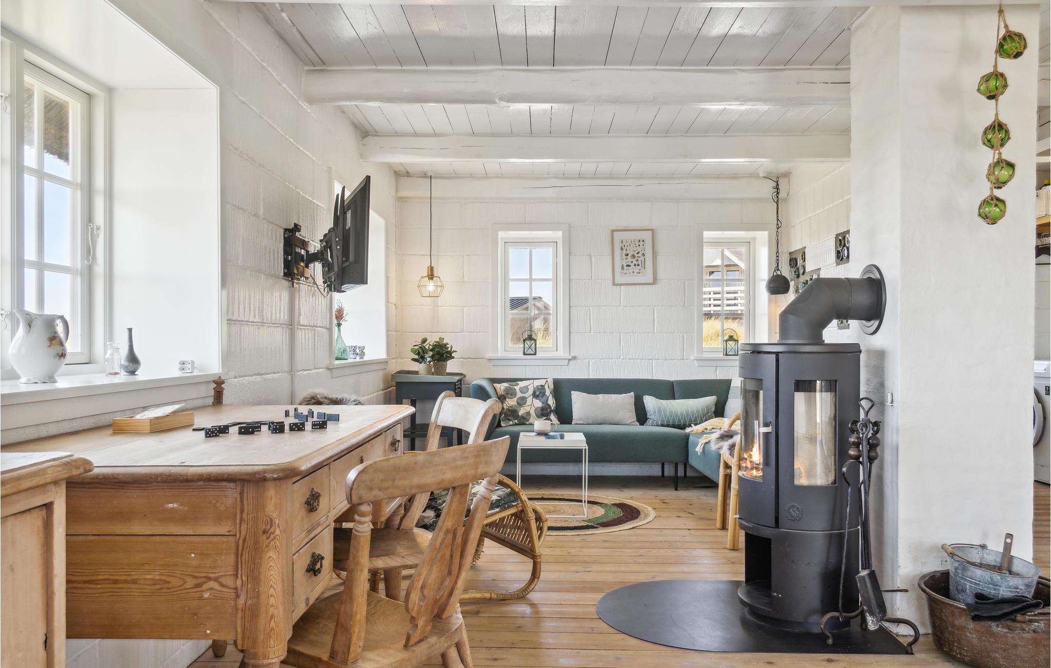 Das komfortable Haus mit charmantem Reetdach empfängt Sie in fantastischer Lage nur wenige Schritte vom Meer entfernt. Ob Strandvergnügen, Unternehmungen in herrlicher Natur oder entspannte Tage im Ferienhaus, hier haben Sie alle Möglichkeiten. Helle Räume im klassisch-skandinavischen Sommerhausstil mit fantasievoller Dekoration machen es zur idealen Basis für eine erholsame Zeit, aus dem Haus und vom Grundstück genießen Sie einen wunderbaren Blick auf das Meer und die ursprüngliche Natur. Verbringen Sie hier gemütliche Abende nach erlebnisreichen Tagen, entspannen Sie auf dem Sofa, der Kaminofen schafft eine besonders behagliche Atmosphäre.
