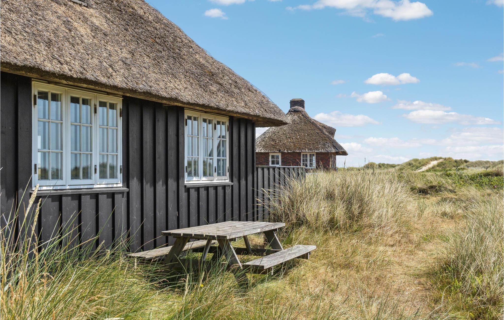 Charmantes Ferienhaus mit Reetdach, Meerblick und Terrasse in Blåvand, ideal für entspannte Tage an der Nordseeküste.