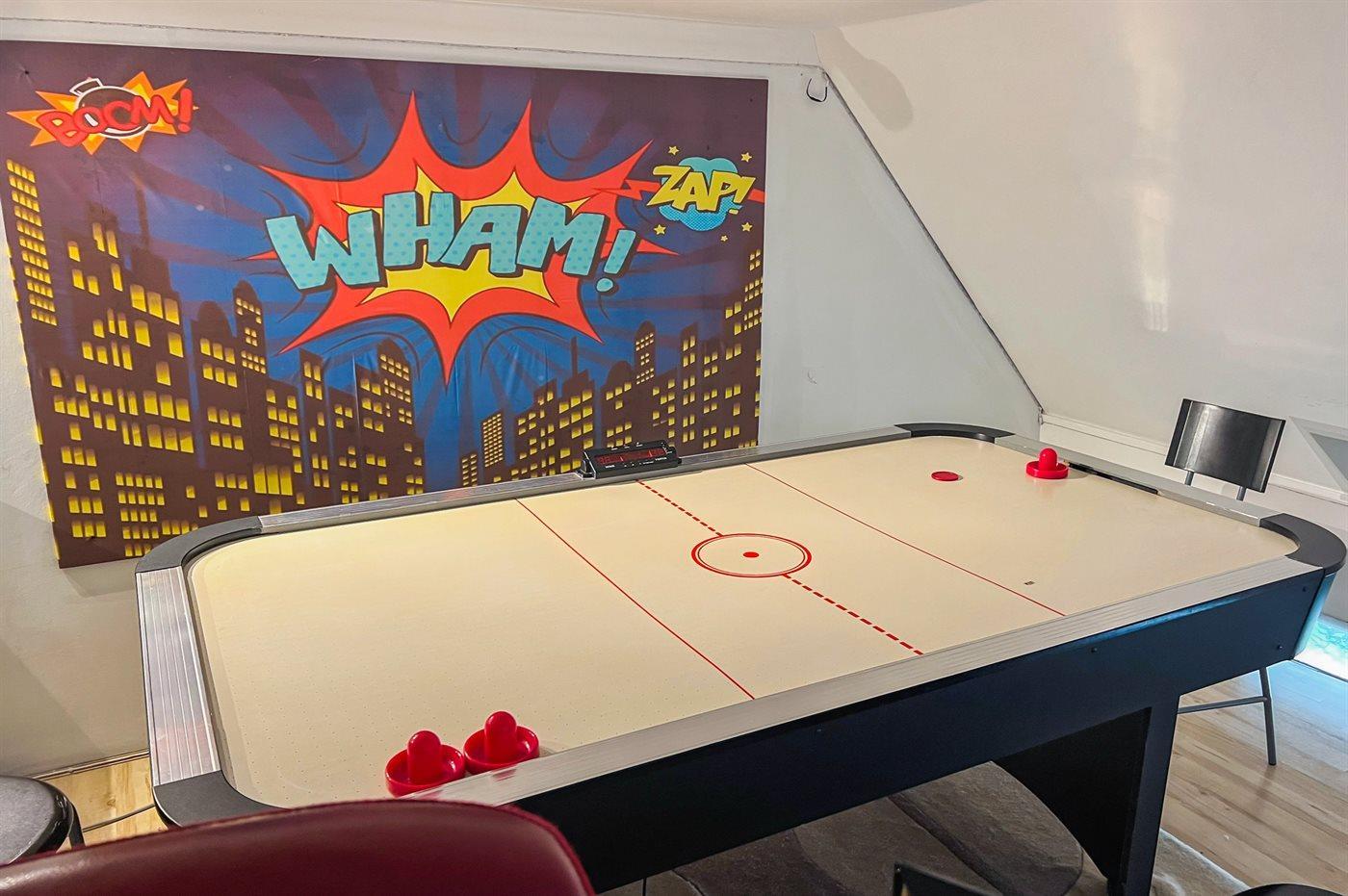 Dieses schöne Ferienhaus auf dem Land ist außergewöhnlich gut ausgestattet – mit eigenem Heimkino inklusive Surround-Sound und acht authentischen Kinosesseln. Airhockey und Tischfußball gehören ebenfalls zum Erlebnis, wenn ihr als große Familie oder mit Freunden zusammen eine gemütliche Zeit verbringen möchtet – in einem Haus, das ungewöhnlich viel Platz für Gemeinschaft bietet.