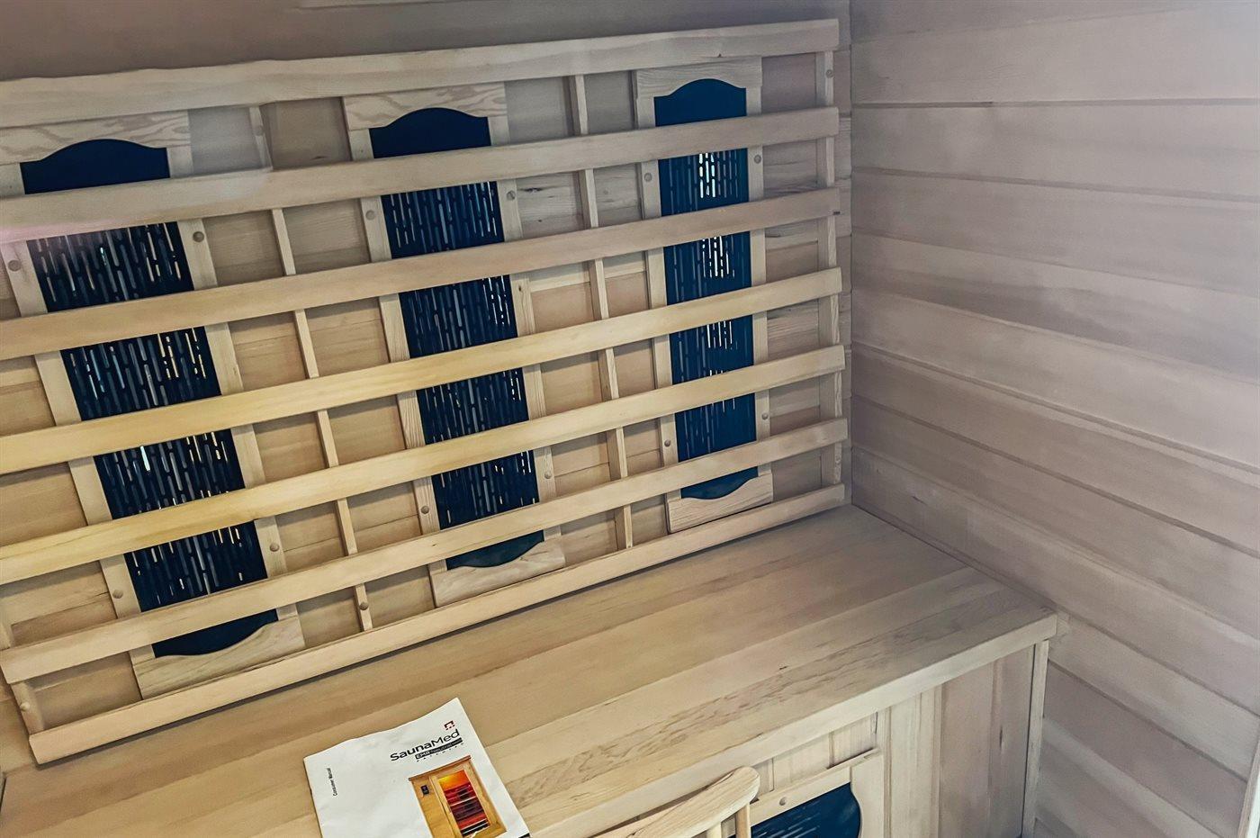 Es gibt 2 Badezimmer mit Duschnische und 2 Toiletten Es steht eine Sauna zur Verfügung in der Sie sich so richtig entspannen können.