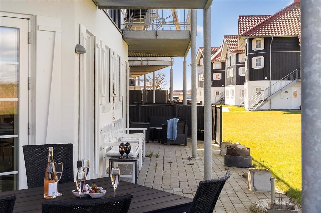Draußen finden Sie den schönen Gemeinschaftsgarten, der Platz für Entspannung und Spiel bietet. Die große Terrasse ist perfekt für Mahlzeiten im Freien oder einfach, um in Ruhe die Sonne zu genießen. Es gibt viel Platz für Entspannung und Aktivitäten, sodass Sie Zeit mit der Familie verbringen oder sich eine Auszeit nehmen können. Der sehr nahegelegene Strand bietet Ihnen einfachen Zugang zu einem schönen Tag am Wasser, wo Sie schwimmen, sich sonnen oder entlang der Küste spazieren gehen können. Die ruhige Atmosphäre rund um die Ferienwohnung macht sie zu einem idealen Ort, um Frieden zu finden und die Natur zu genießen. Nach einem erfrischenden Bad können Sie sich schnell unter der Dusche abspülen, bevor Sie Ihren entspannten Tag in der schönen Umgebung fortsetzen.