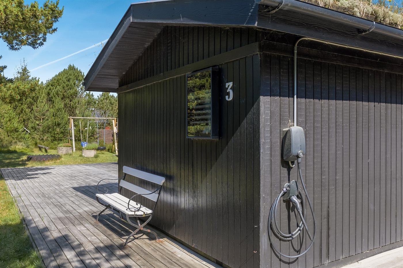 Dieses Ferienhaus wurde 2013 teilweise renoviert und 2018 wurde die Küche erneuert. Das Ferienhaus liegt in einem ruhigen und naturschönen Gebiet, auf einem ungestörten Grundstück, das an ein unter Naturschutz stehendes Gelände angrenzt. Angler können ihr Glück im Angelsee in Toftum versuchen. Außer Schaukel, Sandkasten und Rutsche gibt es einen Schwebebalken auf dem Grundstück. Es gibt eine große, teilweise überdachte Terrassenfläche mit Gartenmöbeln. Es besteht die Möglichkeit einen Hundezaun aufzustellen, so entsteht ein ungefähr 60 m2 großes Hundegehege, von dem die Hälfte überdacht ist. Über 50 deutsche TV-Programme.