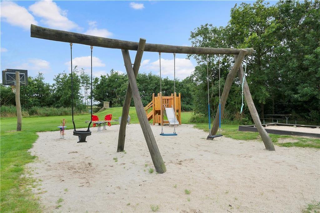 Sowohl vor als auch hinter dem Ferienhaus locken gut angelegte Terrassen mit schönen Erholungs- und Entspannungsmöglichkeiten. Während Sie das Leben unter freiem Himmel in vollen Zügen auf den Terrassen genießen, werden Ihre Kinder vergnügt auf der Grasfläche mit dem Ball spielen, schaukeln oder die ebenfalls vorhandene Sandkiste nutzen. Lehnen Sie sich einfach entspannt in Ihrem Gartenstuhl zurück und spüren Sie, wie sich der Urlaubsfrieden auf Sie hinabsenkt.