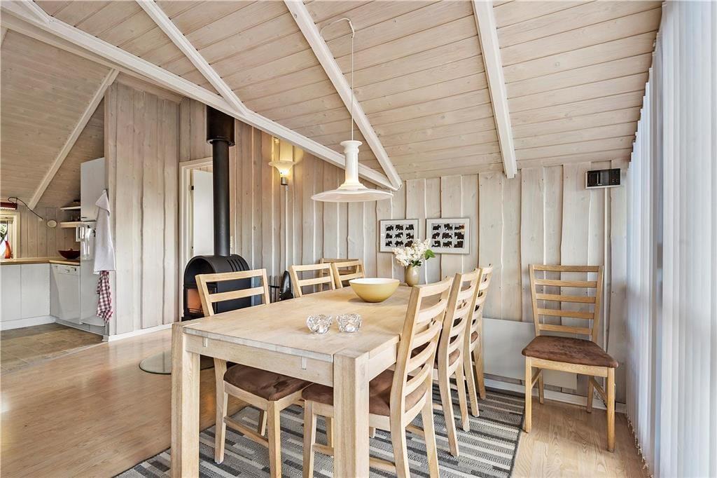 Neben der guten Lage besticht das Ferienhaus auch mit diversen anderen Qualitäten, die Ihnen das Urlaubsleben versüßen werden. Es handelt sich um ein helles, gemütliches und funktionell eingerichtetes Exemplar, dass sich Ihnen Dank laufender Pflege in einem außerordentlich guten und schönen Zustand präsentiert. Die 76 m² große Wohnfläche ist wohl durchdacht aufgeteilt. Dies spiegelt sich beispielsweise darin wider, dass sich die drei vorhandenen Schlafräume auf beide Enden des Hauses verteilen. Ein Eingangsbereich mit einer Waschmaschine und einem Wäschetrockner, sowie ein Badezimmer mit einer Fußbodenheizung und einer Sauna gehören ebenfalls zur Wohnfläche. Den zentralen Sammelpunkt des Hauses bildet allerdings der schöne Wohnraum samt integrierter Küchenabteilung. Der Wohnraum bietet Ihnen viel Platz für das gemütliche Beisammensein und zum Erholen und Entspannen. An kühlen Abenden sorgt der romantisch knisternde, effektive Kaminofen nicht nur für behagliche Wärme, sondern auch für ein Maximum an echter dänischer Ferienhausgemütlichkeit.