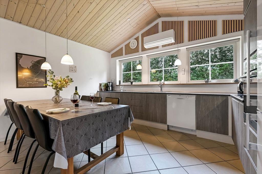 Da es sich bei dem Weg Vibevænget um eine Sackgasse handelt, geht es hier angenehm ruhig zu. Das Haus liegt zudem am Ende eines kleinen Stichweges, der vom Vibevænget abzweigt. Von Ferienhaus aus erreichen Sie problemlos mehrere familienfreundliche Aktivitätsmöglichkeiten. Bereits nach 1,5 Kilometern erreichen Sie beispielsweise das Bork Legeland, einen attraktiven Indoorspielplatz. Auch das Freilichtmuseum Bork Vikingehavn liegt ganz in der Nähe. Naturliebhaber und Wassersportenthusiasten wird die Nähe zum Ringkøbing Fjord und zum beliebten Surfstrand des Urlaubsortes begeistern, wo Touristen und Einheimische sich Kite- oder Windsurfing, Kajak-oder SUP-Board-Fahren oder anderen Formen des Wassersports widmen. Der beschauliche Hafenbereich zieht nicht nur Segelsportfreunde an, sondern fasziniert jedermann mit seinem gemütlichen Ambiente, den Lokalitäten, den Geschäften und der schönen Aussicht auf den Fjord. In Bork Havn locken außerdem ein kleiner Badestrand, eine Kerzengießerei und eine tolle Minigolfanlage, die im Übrigen ebenfalls von Bork Havn betrieben wird.