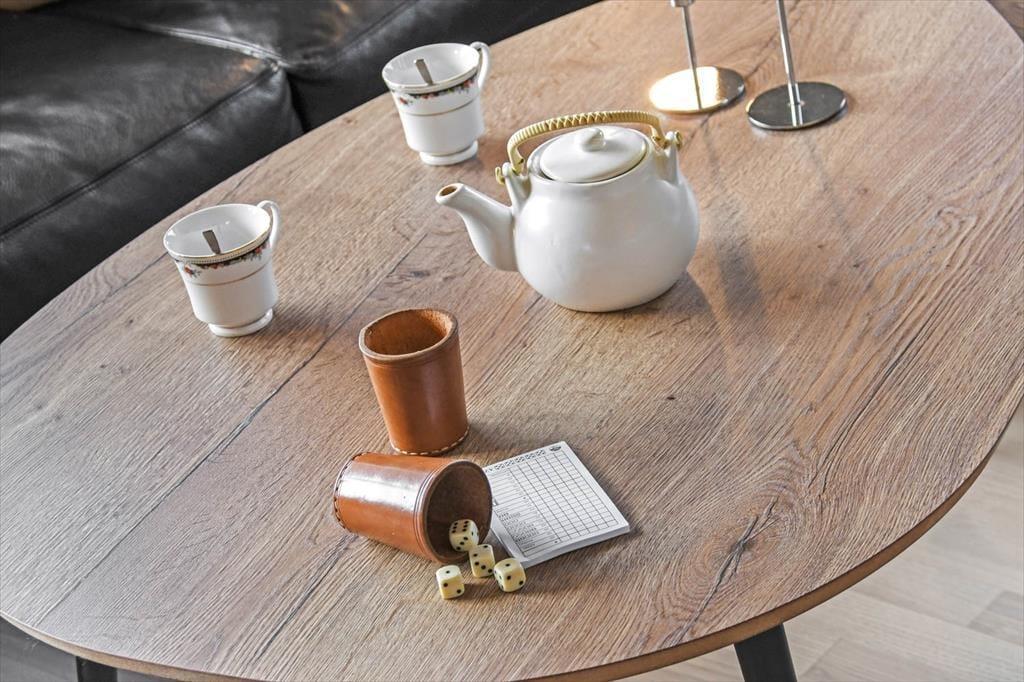 Sämtliche Räume des Ferienhauses begrüßen Sie mit einer gemütlichen Einrichtung und das Nebengebäude sprüht nur so vor Charme. Dennoch ist es höchstwahrscheinlich der Wohnraum, der bei Ihrer Familie schnell zum zentralen Sammelpunkt avancieren wird. Beim Wohnraum des Hauses handelt es sich um einen schönen Aufenthaltsraum mit einem Esstisch, einem Fernseher und einer komfortablen Sofaabteilung. Die gut eingerichtete Küchenabteilung ist ebenfalls in den Wohnraum integriert, sodass Sie selbst während der Zubereitung der Mahlzeiten voll und ganz am Familienleben teilhaben werden. Vom Flur des Hauses aus gelangen Sie in einen Hauswirtschaftsbereich mit einer Waschmaschine und einem Wäschetrockner, in ein Badezimmer und in zwei Schlafräume mit insgesamt vier Schlafplätzen. Hinzu gesellt sich ein Doppelbett im Nebengebäude. Dies bedeutet, dass Sie sich mit bis zu sechs Personen in Ihrer ganz privaten Urlaubsoase versammeln können.