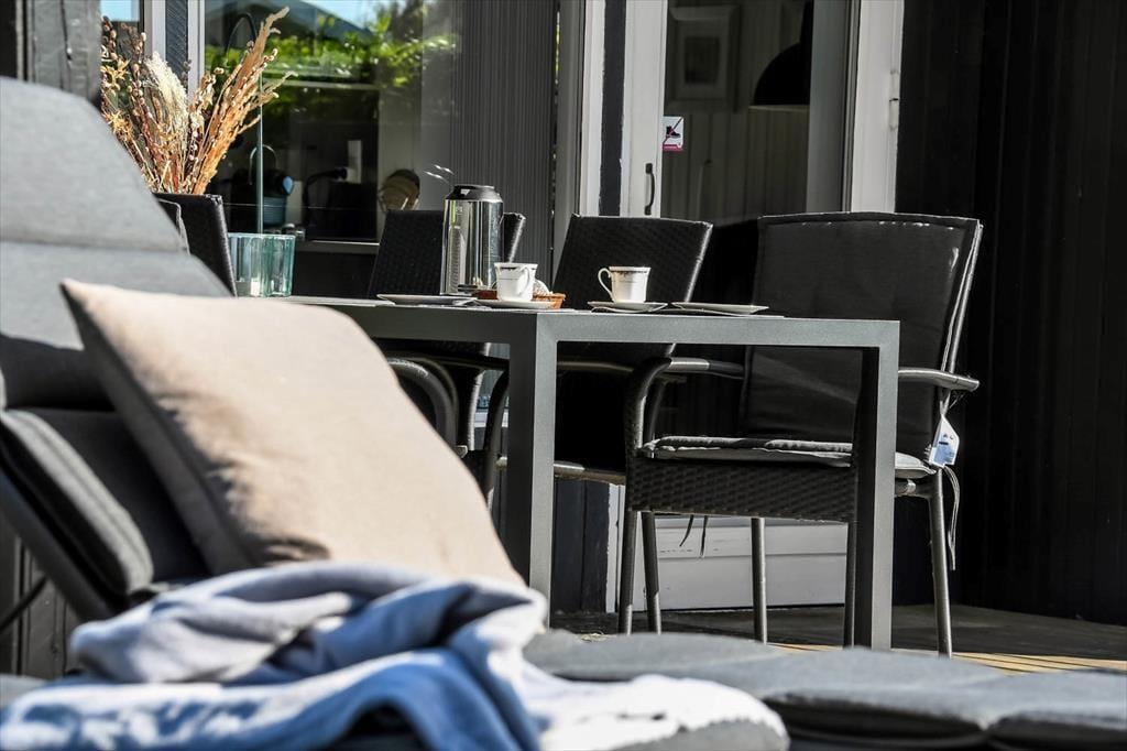 Auf der mit Schotter versehenen Grundstückseinfahrt vor dem Haus können Sie sehr gut parken. Der hintere Teil des Gartens ist hingegen dem Spielen und der Erholung gewidmet. Auf der Grasfläche können Sie und Ihre Kinder zusammen mit dem Ball spielen oder sich bei Gartenspielen wie beispielsweise Wikingerschach vergnügen. Die jüngsten Urlauber werden stattdessen sicherlich gerne schaukeln oder in der hauseigenen Sandkiste spielen. Wenn Sie sich so richtig erholen und entspannen möchten, begeben Sie sich einfach auf die nach Süden ausgerichtete, teilweise überdachte Terrasse, auf der Sie einen Großteil des Tages über von der Sonne verwöhnt werden.
