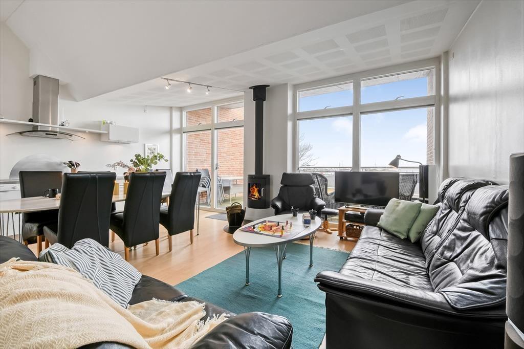 Diese Ferienwohnung ist Teil eines im Jahr 2009 errichteten Wohnkomplexes, der nicht nur mit moderner Architektur, sondern auch mit einer modernen Innenraumgestaltung zu überzeugen weiß. Beide Wohnetagen sind durch helle Räumlichkeiten mit komfortablen Qualitätsmöbeln geprägt. Die Wohnfläche umfasst vier Schlafräume und zwei Badezimmer und eignet sich daher hervorragend für eine größere Anzahl Urlauber. Drei der Schlafzimmer sind zusammen mit dem größeren der beiden Bäder im Erdgeschoss platziert. Ein erwähnenswertes Detail dieses Bades ist der Whirlpool, der zu entspannten Momenten einlädt. Im oberen Stockwerk erwarten Sie das zweite Badezimmer und das vierte Schlafgemach, das tagsüber als TV-Raum oder auch als Spielzimmer für die jüngsten Urlaubsgäste dienen kann. Zum Sammelpunkt der gesamten Familie wird allerdings der angrenzende Wohnraum avancieren, der sich offen aus dem Wohnzimmer und der Küche samt Essplatz zusammensetzt. Untermalt wird die Stimmung hier durch das behagliche Knistern des Kaminofens und durch die Aussicht auf das Hafenbecken, in dem die Boote nach Ihrer Rückkehr vom Ringkøbing Fjord anlegen.