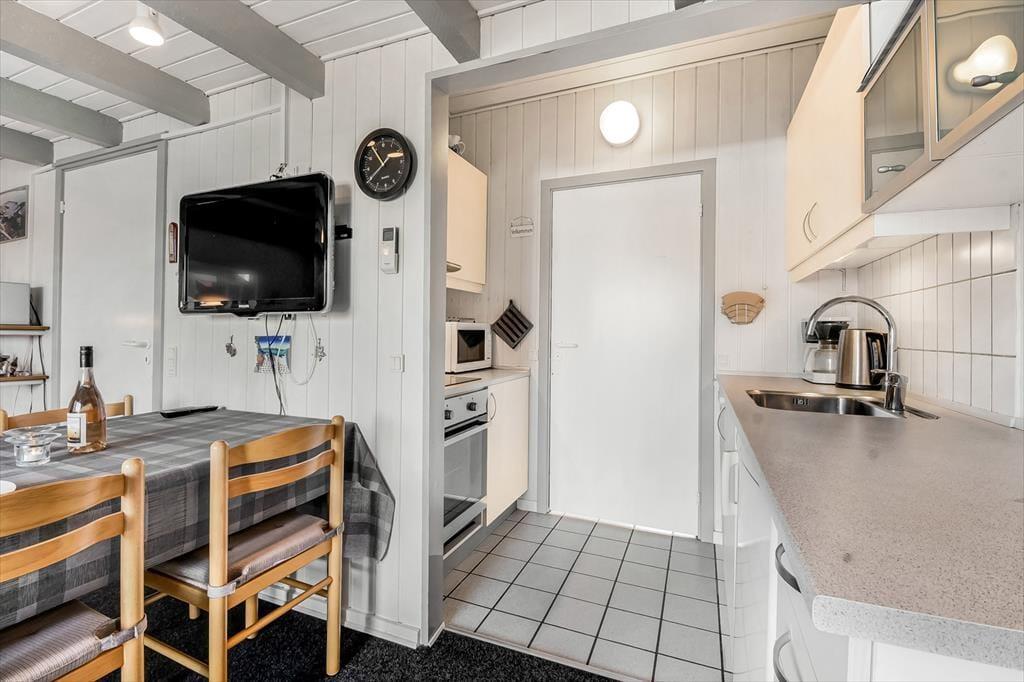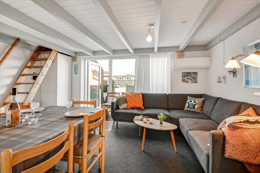 Die Quadratmeter der Wohnung sind gut ausgenutzt, sodass eine Unterbringung mit sechs Personen möglich ist. Im Wohnzimmer können Sie auf dem Ecksofa entspannen und sich zum Kartenspielen am Esstisch versammeln. Von hier aus ist die Küche nicht weit entfernt, wenn Sie Kaffee kochen oder das Abendessen zubereiten möchten. Ein Badezimmer und ein Schlafzimmer mit Doppelbett befinden sich ebenfalls im Erdgeschoss, während eine Treppe hinauf zu einem großen Dachboden führt, in jeder Nische sind zwei Doppelbetten aufgestellt. Auf dem Dachboden besteht die Möglichkeit sich einen Film (DVD) anzuschauen, wenn Sie sich nicht alle zum Filmabend im Wohnzimmer treffen möchten, und wenn das Wetter schön und sommerlich ist, können Sie den Film lieber auslassen und stattdessen auf der Terrasse sitzen.