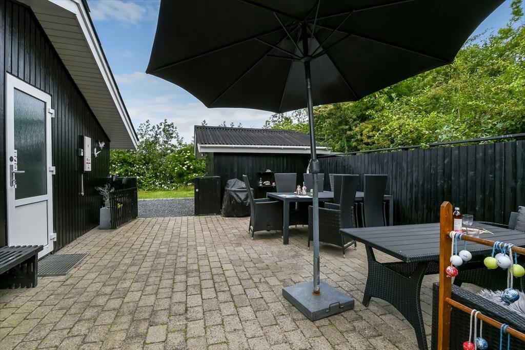 Am Eingang des Hauses finden Sie die Terrasse, die von der Straße zurückversetzt ist und reichlich Gelegenheit bietet, sowohl in einer Sonnenliege zu entspannen als auch ein gutes Essen oder eine gute Tasse Kaffee zu genießen. Der größte Pluspunkt ist der große und gepflegte Rasen, der Platz für alle Arten von Spielen bietet – ob Fußball, Pétanque oder etwas ganz anderes. Das Haus befindet in einer Sackgasse, so dass Sie keinen vorbeifahrenden Verkehr bemerken – und so den Urlaub in Ruhe genießen können, aber gleichzeitig die gemütliche Ferienhausatmosphäre spüren, die überall in Bork Havn zu finden ist.