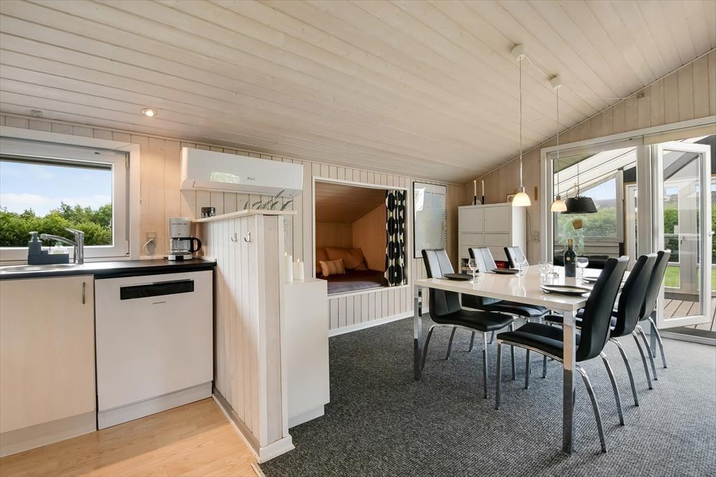 Das Sommerhaus liegt gut und ruhig ganz in der Nähe eines Spielplatzes und ist von Grünflächen umrahmt. Sie haben auch einfachen Gang zum Ringkøbing Fjord – zum Beispiel können Sie zum wunderschönen Surfstrand von Bork Havn hinuntergehen, der sowohl Anfänger als auch erfahrene Surfer anzieht. Wenn Sie SUP, Kajakfahren oder andere Wassersportaktivitäten ausprobieren möchten, besteht die Möglichkeit, einen Kurs in Bork Havn zu buchen. Wenn Sie schwimmen möchten, kann dies am kleinen, kinderfreundlichen Strand stattfinden etwas nördlich des Hafens. In Bork Havn gibt es sowohl die Möglichkeit, in ein Restaurant zu gehen als auch einzukaufen, und im örtlichen Büro können Sie Minigolf spielen. Etwas außerhalb der Stadt liegt Bork Legeland und auch Bork Vikingehavn ist auf jeden Fall einen Besuch wert. Wenn Sie ins Auto steigen, brauchen Sie nur wenige Minuten zu fahren, um Nymindegab und die große, tosende Nordsee zu erreichen, wo Sie wirklich das Gefühl haben, im Westen Urlaub zu machen.