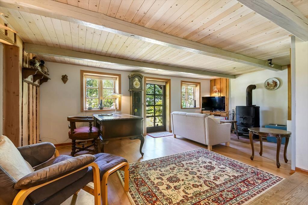 Das Ferienhaus empfängt dich mit einer gemütlichen Einrichtung, einem authentischen Charme und niedrigen Decken, der dafür sorgt, dass du sofort zur Ruhe kommst. Hier geht es nicht um modernen Minimalismus, sondern um warme Farben, persönliche Details und eine Atmosphäre, die zur Entspannung einlädt. Im Wohnzimmer findest du viel Platz, um es dir mit einem Buch und einer Tasse Kaffee bequem zu machen, während das Knistern des Holzofens am Abend für wohlige Gemütlichkeit sorgt. Wenn die Nacht hereinbricht, schläfst du mit der Stille ein und wachst mit den sanften Sonnenstrahlen auf, die durchs Fenster fallen – ein Erlebnis, das zwei Menschen und zwei Hunde gleichermaßen zu schätzen wissen.