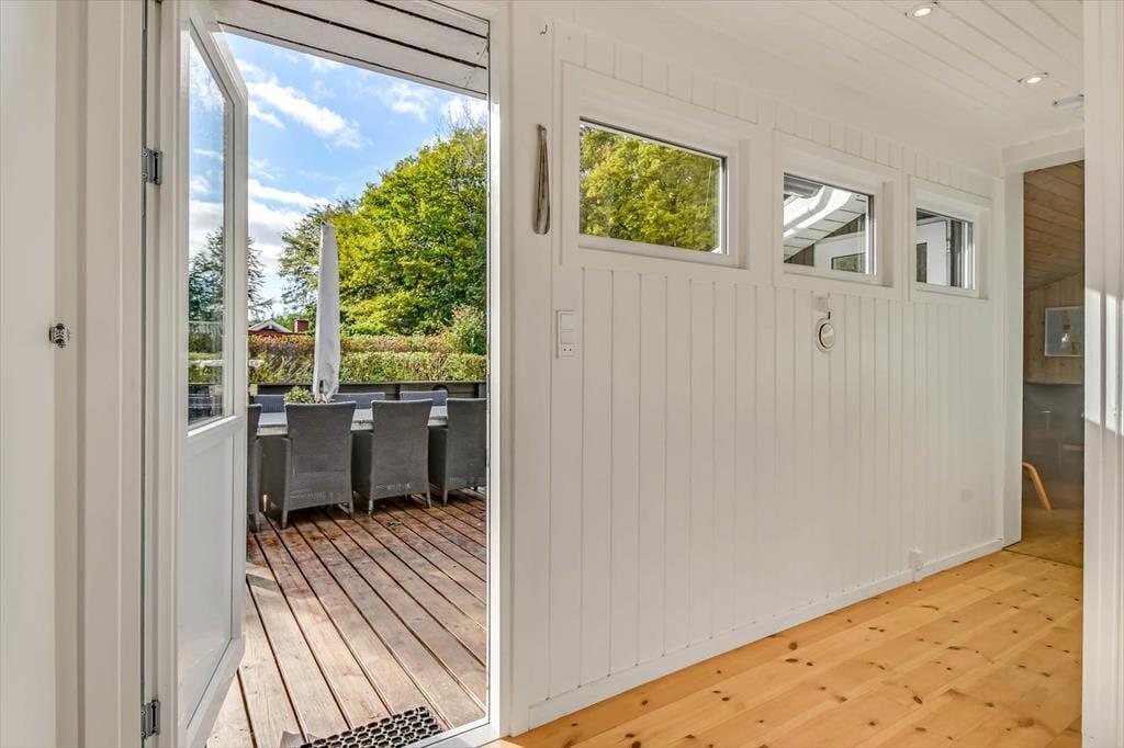 Das Ferienhaus ist von einer schönen Terrasse umgeben, auf der du die Sonne und die Sommertage in vollen Zügen genießen kannst. Die Terrasse ist der ideale Ort, um morgens die erste Tasse Kaffee zu trinken, und später könnt ihr euch um den Grill versammeln und ein leckeres Essen zubereiten. Für die kleinen Gäste gibt es genügend Platz zum Spielen auf dem Rasen, und im Garten findest du eine gemütliche Feuerstelle, wo die ganze Familie zusammenkommen kann, um die Wärme des Feuers zu genießen und Stockbrot oder Marshmallows zu rösten. Die Außenbereiche bieten zahlreiche Möglichkeiten, die frische Luft zu genießen und schöne gemeinsame Stunden in friedlicher Umgebung zu erleben.
