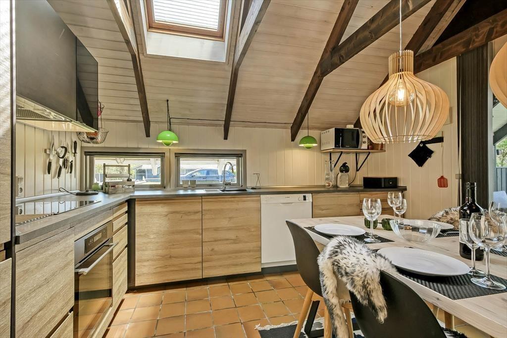 Draußen wartet eine schöne, uneinsehbare Terrasse auf euch, auf der ihr den Tag windgeschützt und mit Sonne fast den ganzen Tag verbringen könnt. Hier lässt sich der Morgen ideal mit einer Tasse Kaffee und Vogelgezwitscher beginnen, während die Kinder auf dem Rasen spielen und die Hunde sicher den Garten erkunden. Wenn die Sonne höher steigt, könnt ihr das Mittagessen ins Freie verlegen, euch mit einem guten Buch zurücklehnen oder einfach die stille Stimmung genießen, wie sie nur ein Ferienhausgebiet wie Bork Havn bieten kann. Und wenn der Abend anbricht, bietet es sich an, den Grill anzuwerfen und unter freiem Himmel zu essen, während die letzten Sonnenstrahlen den Himmel golden färben.