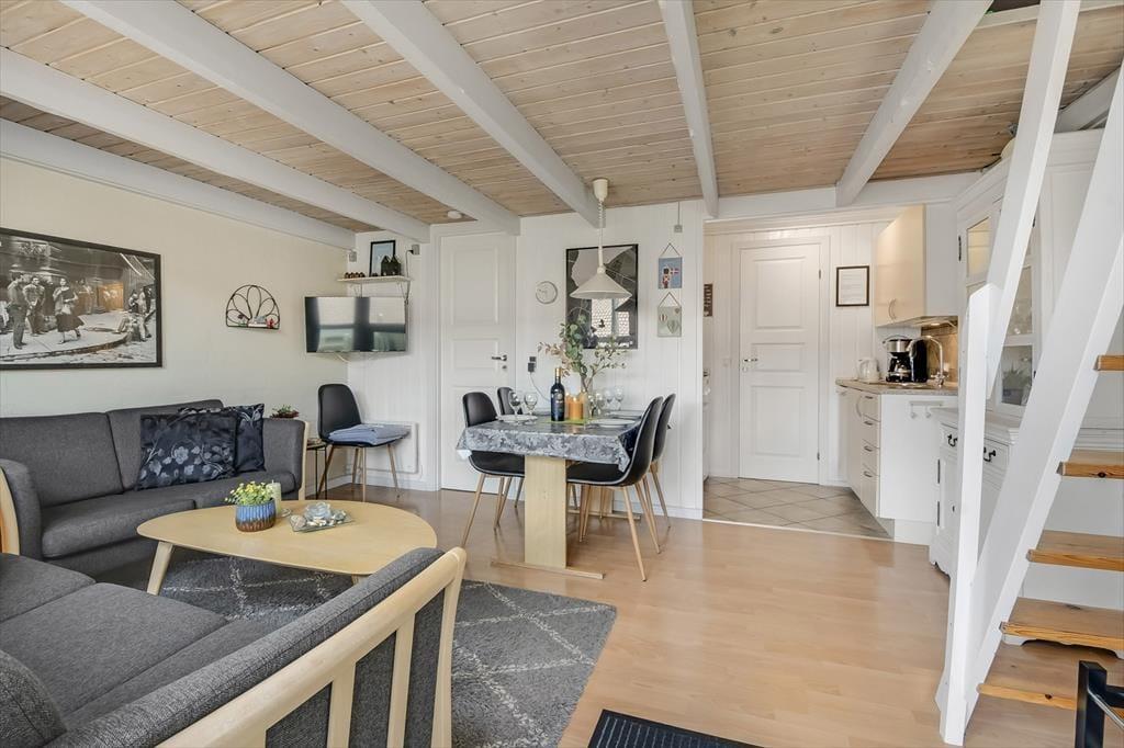 Wenn du die Wohnung betrittst, empfängt dich eine helle und einladende Atmosphäre, in der Raum und Funktionalität wunderbar miteinander harmonieren. Der offene Grundriss schafft einen angenehmen Aufenthaltsraum, in dem sich Familie oder Freunde zu gemeinsamen, gemütlichen Momenten versammeln können. Du wirst spüren, wie sich Ruhe und Entspannung ausbreiten, wenn du es dir nach einem erlebnisreichen Tag am Fjord oder im Ort in der Sofaecke gemütlich machst. Die durchdachte Einrichtung sorgt dafür, dass jeder seinen Lieblingsplatz findet – sei es in der Küche, wo mit Liebe gekocht wird, im Wohnzimmer oder in den ruhigen Schlafbereichen, die zu erholsamen Nächten und neuer Energie einladen.