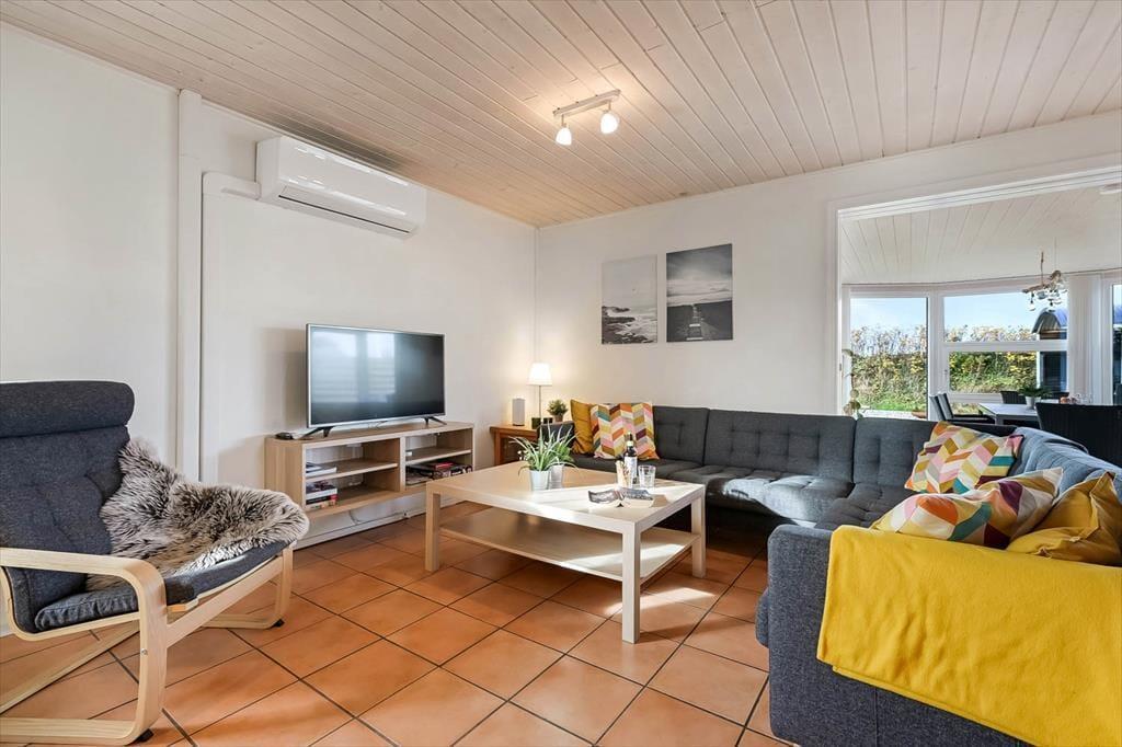 Ferienhaus in Bork Havn, Westjütland, mit Platz für 6 Erwachsene. Es erwartet Sie eine gemütliche Einrichtung mit u.a. Kamin, darüber hinaus sind Waschmaschine, Spülmaschine und Wäschetrockner in dieser Unterkunft vorhanden.
