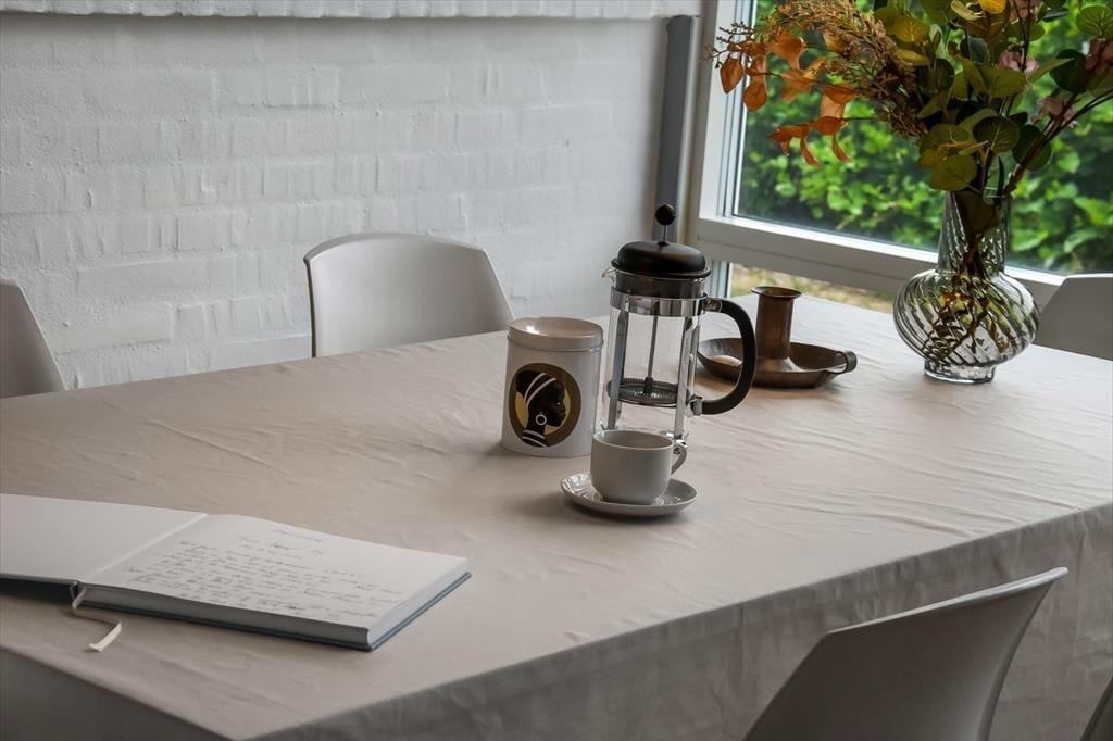 Draußen ist die Atmosphäre ebenso einladend wie drinnen. Die Terrasse des Ferienhauses ist der ideale Ort, um den Tag mit einer Tasse Kaffee zu beginnen, während die Sonne langsam über die Baumwipfel steigt. Der Garten lädt zu entspannenden Stunden unter freiem Himmel ein, in denen die Kinder frei spielen können und die Erwachsenen ein kühles Getränk in den Gartenmöbeln genießen. Entfachen Sie den Grill und lassen Sie den Duft verbreiten, während Lachen und Urlaubsgespräche den Abend erfüllen. Wenn die Dämmerung einsetzt und das Licht sich dimmt, spürt man leicht die besondere Ruhe, die nur in einem Ferienhaus nahe dem Fjord zu finden ist – eine Atmosphäre, die Raum für sowohl Besinnung als auch Gemeinschaft bietet.