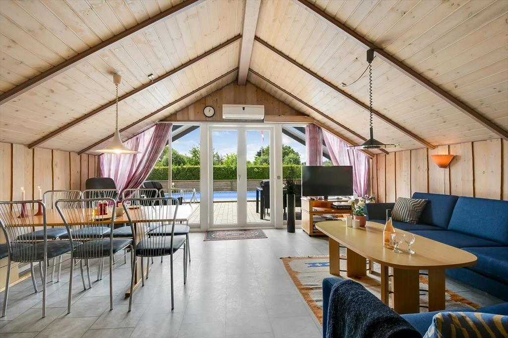 Das Draußensein beginnt in diesem Ferienhaus in Bork Havn so richtig im eigenen Garten. Ein großer, einladender Pool bildet das Herzstück eurer Urlaubstage, und es fällt fast schwer, am Morgen nicht gleich ins kühle Nass zu springen. Wenn die Sonne scheint, lässt sie sich wunderbar auf der Terrasse genießen – vielleicht mit einem guten Buch in der Hand oder einem kalten Getränk auf der Sonnenliege. Die Terrasse ist gut windgeschützt und eignet sich ideal für Mahlzeiten oder lange Sommerabende unter freiem Himmel. Es gibt reichlich Platz für Spiel und Entspannung, und da der Garten komplett eingezäunt ist, können sich Kinder und Hunde sicher und unbesorgt frei bewegen. Ganz gleich, ob du den Tag in der Sonne, im Schatten oder im Pool verbringen möchtest – hier findest du die besten Voraussetzungen dafür.