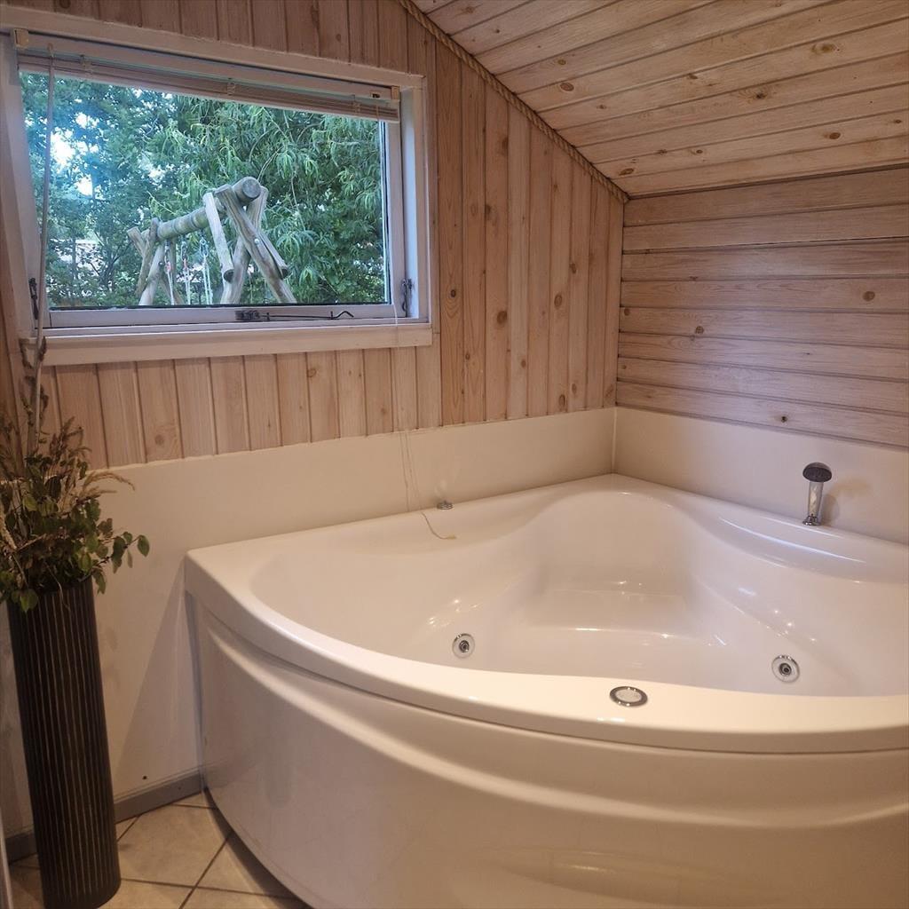 Sobald du das Ferienhaus betrittst, stellt sich eine angenehme Ruhe ein. Die hellen Wohnräume laden zum Wohlfühlen und Beisammensein ein, und du kannst dich schon jetzt auf ein knisterndes Feuer im Kamin freuen, während der Duft des Abendessens aus der offenen Küche durch das Haus zieht. Man kann sich leicht einen stillen Morgen mit Kaffee und frischen Brötchen am Esstisch vorstellen – ebenso wie die Kinder, die sich mit einem Comic auf das Sofa kuscheln oder ein kleines Nickerchen auf weichen Kissen machen. Wenn der Körper nach einer Extraportion Verwöhnung verlangt, wartet im separaten Wellness-Anbau mit Badezimmer mit sowohl ein Whirlpool als auch eine Sauna auf euch. Hier kannst du vollkommen abschalten, während der Dampf aufsteigt und sich die Eindrücke des Tages setzen.