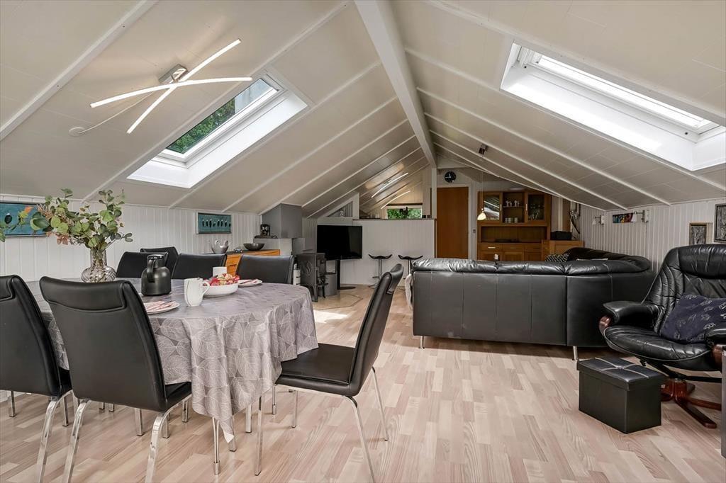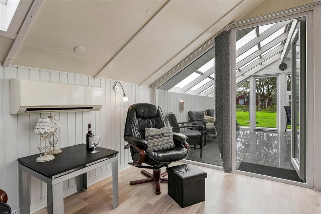 Drinnen empfängt dich eine einladende Atmosphäre, in der du dich vom ersten Moment an wie zu Hause fühlen wirst. Das Wohnzimmer ist der natürliche Treffpunkt des Hauses – ein Ort, an dem du dich mit einer Tasse Kaffee niederlassen kannst, während du dem leisen Knistern des Holzofens lauscht und die Ruhe spürst. Das wunderschöne Wintergarten verlängert die Ferientage, sodass du das Sonnenlicht und den Ausblick auf den Garten genießen kannst, selbst wenn der Wind draußen weht. Hier kann die Familie gemütlich Brettspiele spielen, gute Gespräche führen oder einfach die Stille genießen, während der Duft des Abendessens aus der Küche zieht. Die Stimmung ist entspannt und familiär – genau so, wie ein Urlaub in Bork Havn sein sollte.