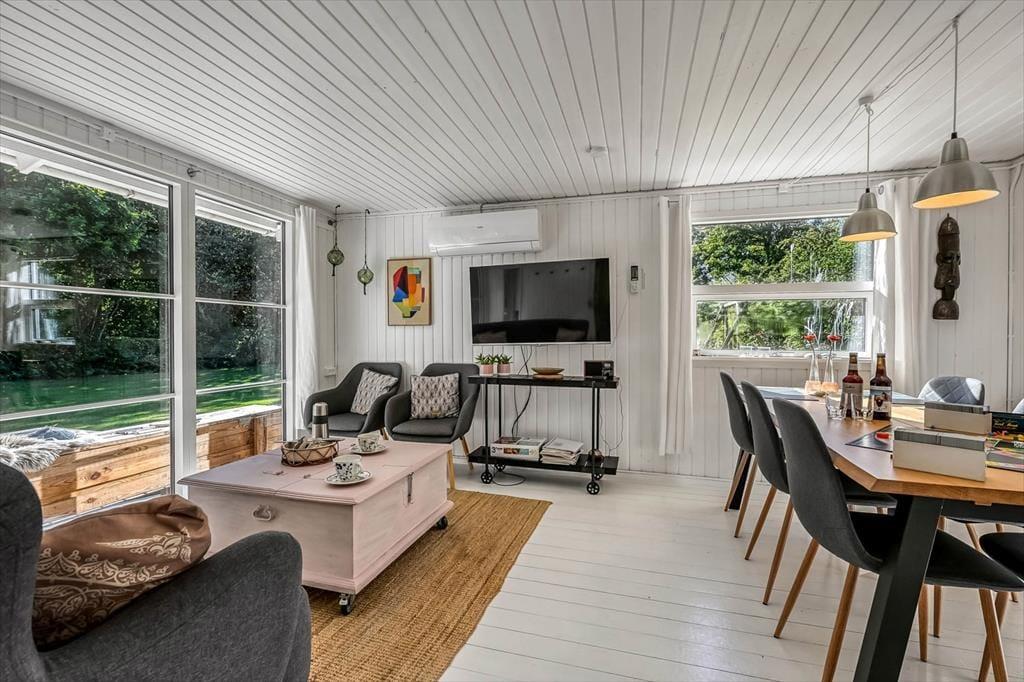 Tritt ein in ein helles und einladendes Ferienhaus, in dem der Fokus ganz auf den Details und einer angenehmen Atmosphäre liegt. Die Einrichtung ist schlicht und stilvoll, und du spürst sofort, dass hier alles – von der Farbwahl bis zu den Materialien – mit Sorgfalt gewählt wurde. Im Wohnzimmer kannst du bei einer Tasse Kaffee auf dem Sofa entspannen, während das Licht durch die großen Fenster fällt und ein sanftes Leuchten in den Räumen erzeugt. Die Küche ist offen in den Wohnraum integriert, sodass du beim Kochen die Gespräche weiterverfolgen kannst. Die Stimmung ist warm und entspannt, und das kleine Haus bietet alles, was du für einen Urlaub voller Ruhe und Geborgenheit brauchst.